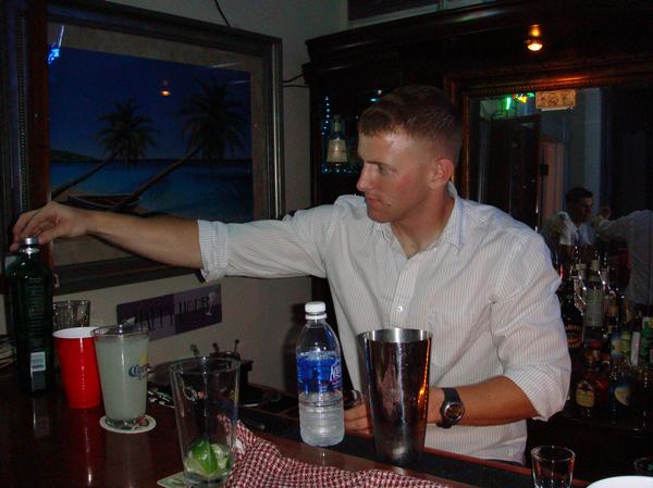 As one can see, Brandon is experiencing some difficulty. However, Marines don’t quit. So, Brandon downed a third shot. It might as well have been three strikes and you’re out because Brandon was simply done at that point. He stumbled away from the bar and out onto the balcony where he collapsed into a chair for the next three hours (until I dragged Captain Brandon back into the house and cleaned the vomit off of him before allowing him to pass out again).
