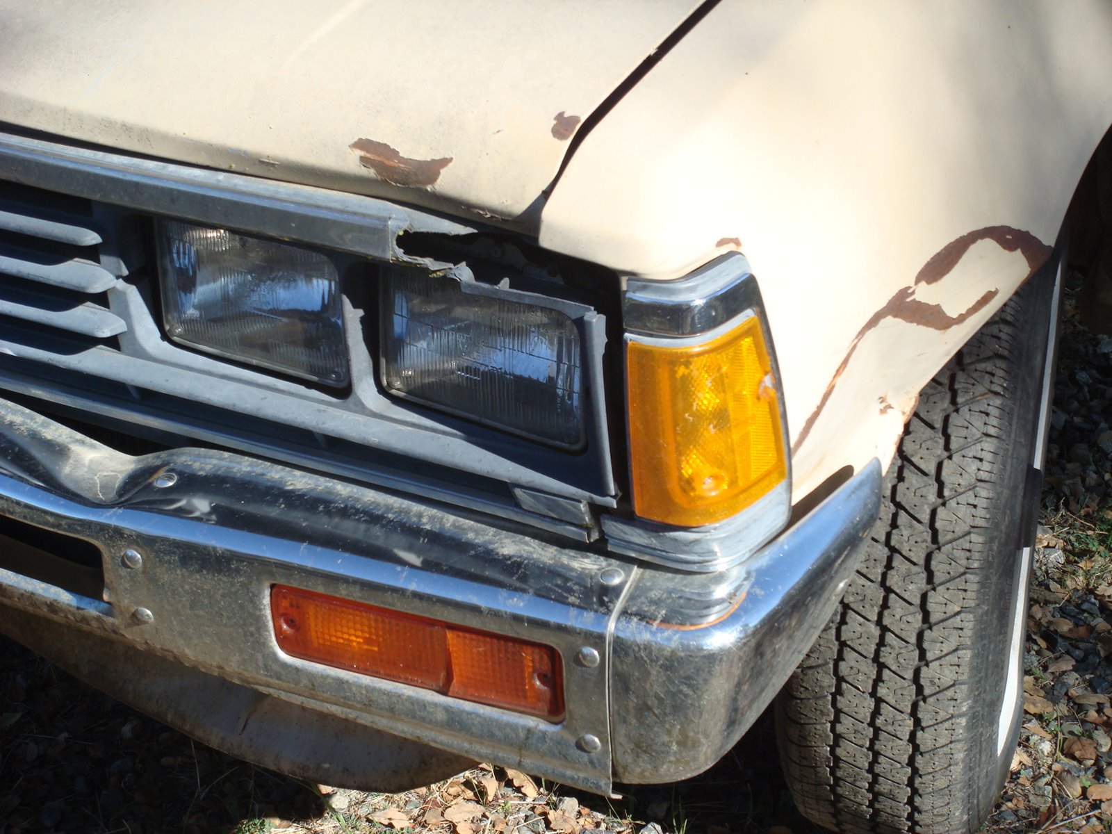 I got out to inspect my truck which had sustained the following damage (the lights were shattered as well, but were replaced before this picture was taken):