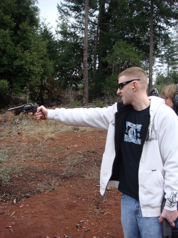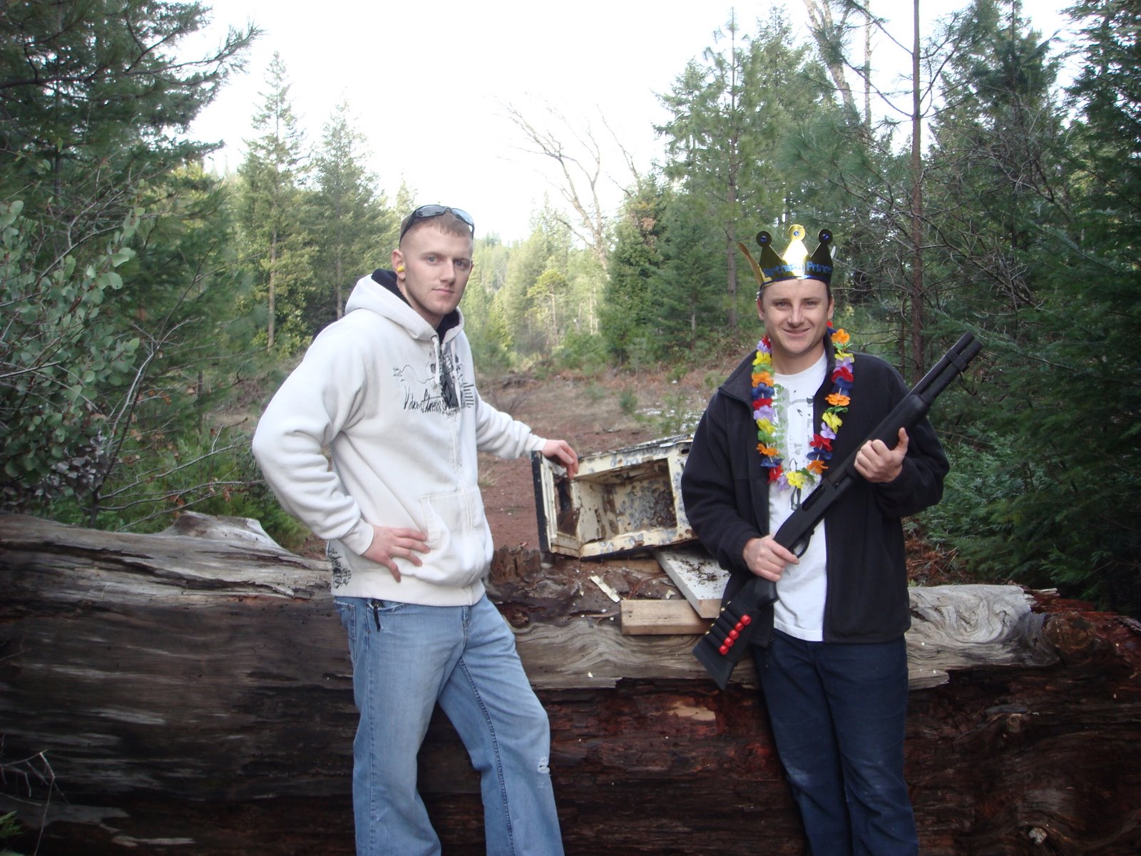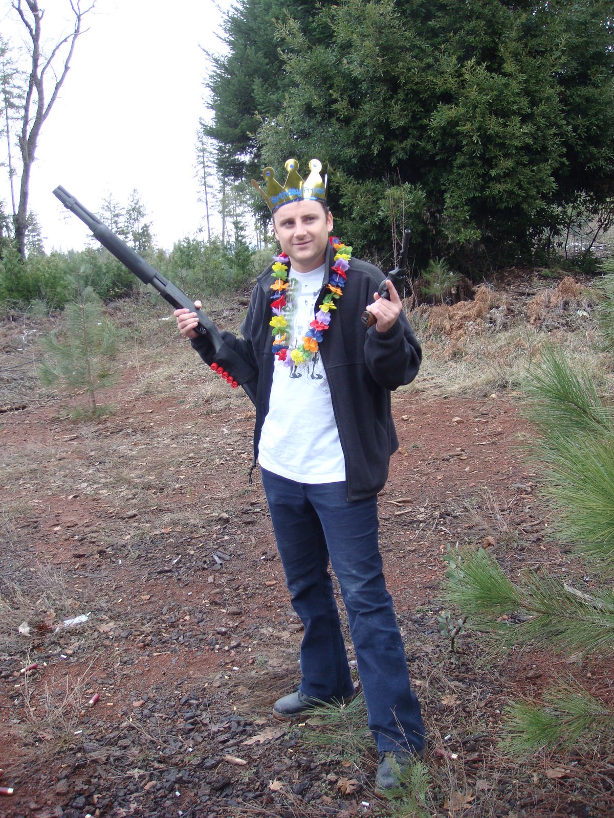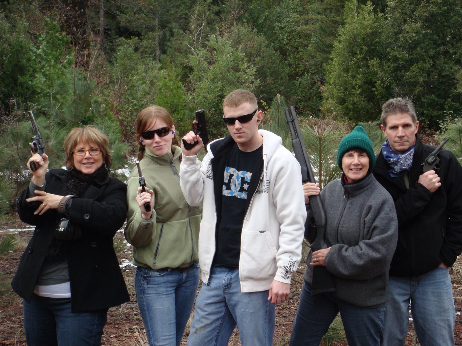 Brandon showed up early Saturday for his surprise birthday party (he thought we were going on a skiing trip). Embracing the ambiguity of the situation (and wishing to continue the celebration), Brandon almost immediately proposed that we go shooting instead of skiing to bring along the numerous party participants. Never one to turn down an adventure, I soon recruited even the more reluctant party participants such as my mother. With a brief pit stop at Ray’s Hardware in Brownsville, we soon had $106.21 worth of ammunition and a trunk full of guns.