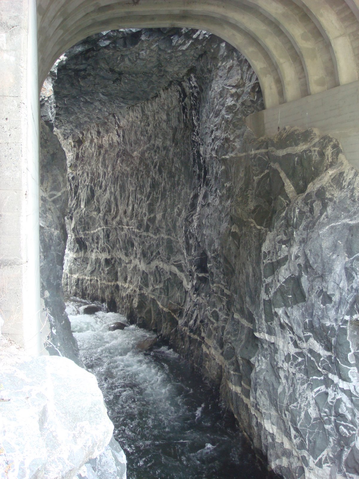 The steep cliffs inspired a number of interesting engineering projects, such as this tunnel allowing a tributary of the Feather River through: