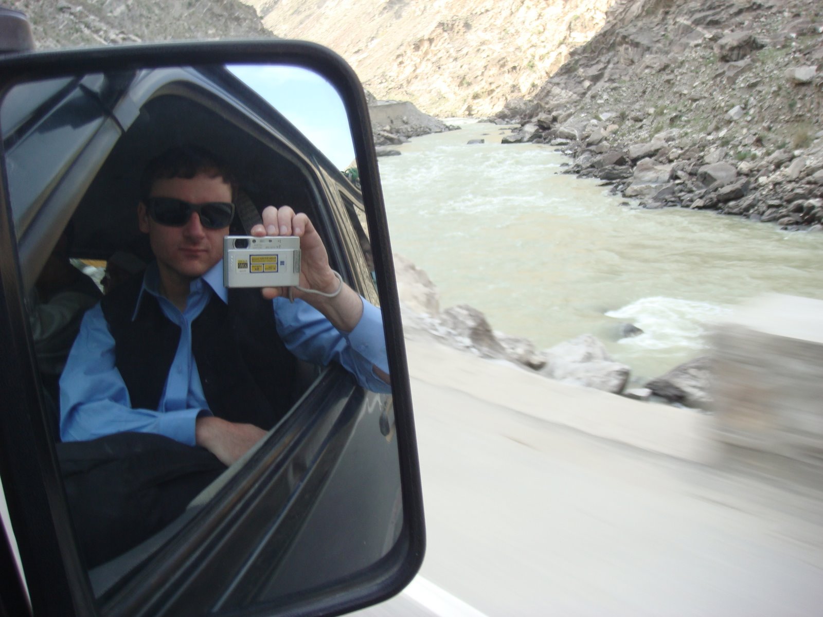 An unintentional self-portrait taken in the Kabul Gorge… The clothing I’m wearing is part of my shalwar kameez that I was required to wear for the morning crossing through the Khyber Pass (without the camera and sunglasses, of course). The clothing is very functional and comfortable: