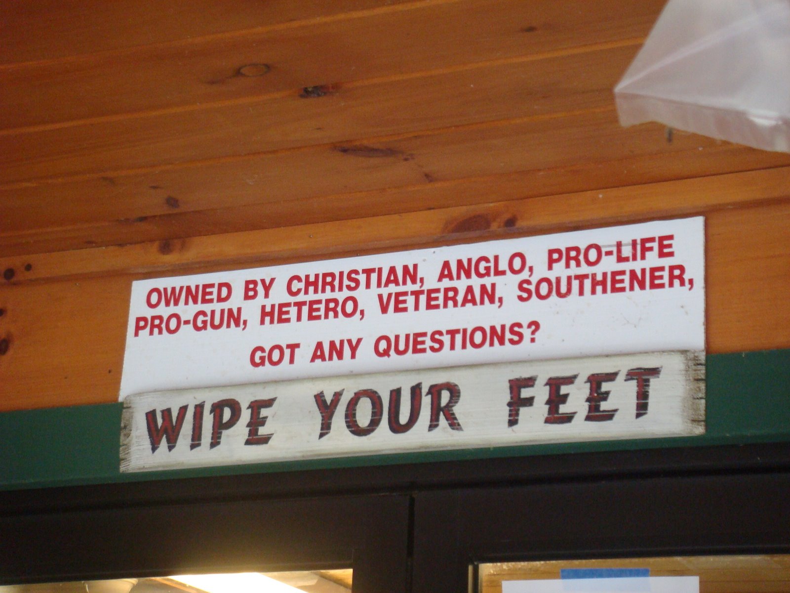Southerners do love their signs…you didn’t note the “WASP owned” sign, I didn’t realize that was something to be proud of. The South will rise again!