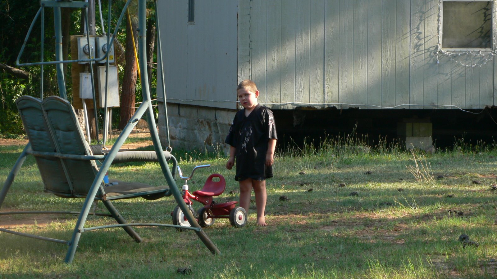 This pig-faced child was dumbfounded by our arrival in his small trailer park. Leaving the county is a big deal for these people and so our arrival in a vehicle with Florida license plates and dressed as obvious outsiders must have been akin to what we would feel if aliens landed in our front yards.