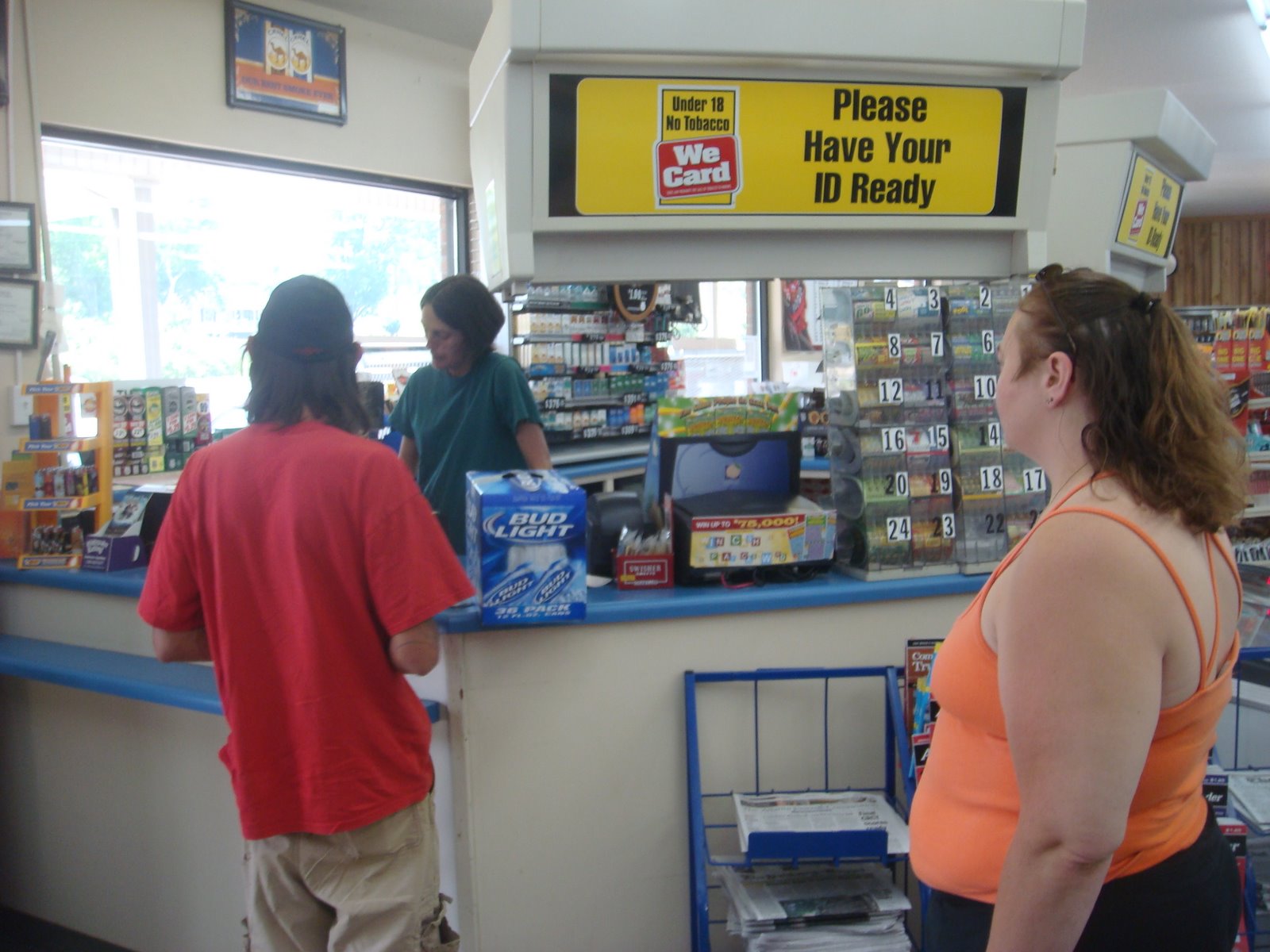 This is a typical scene in a gas station – which serves as the cultural center (I’m not joking) in most of the small towns we passed through… Note the scrawny guy with the mullet purchasing the Bud Light and the fat woman on the right. This is a representative sampling of something we observed over and over again. Everyone in the population was either overweight or meth-addict scrawny. No one looked healthy. There was no in-between.