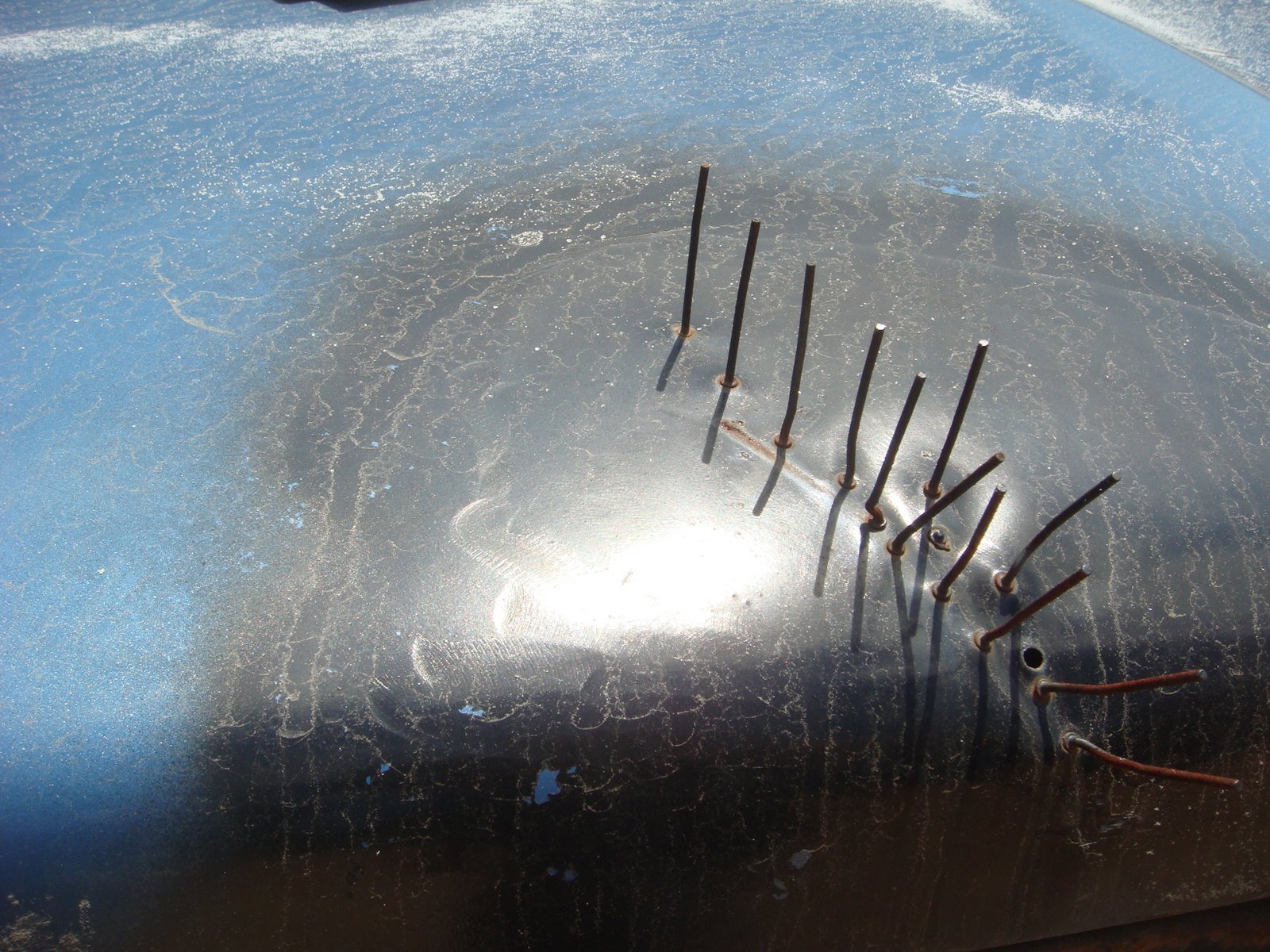 With nails embedded in the hood. Why? We were unable to answer that question: