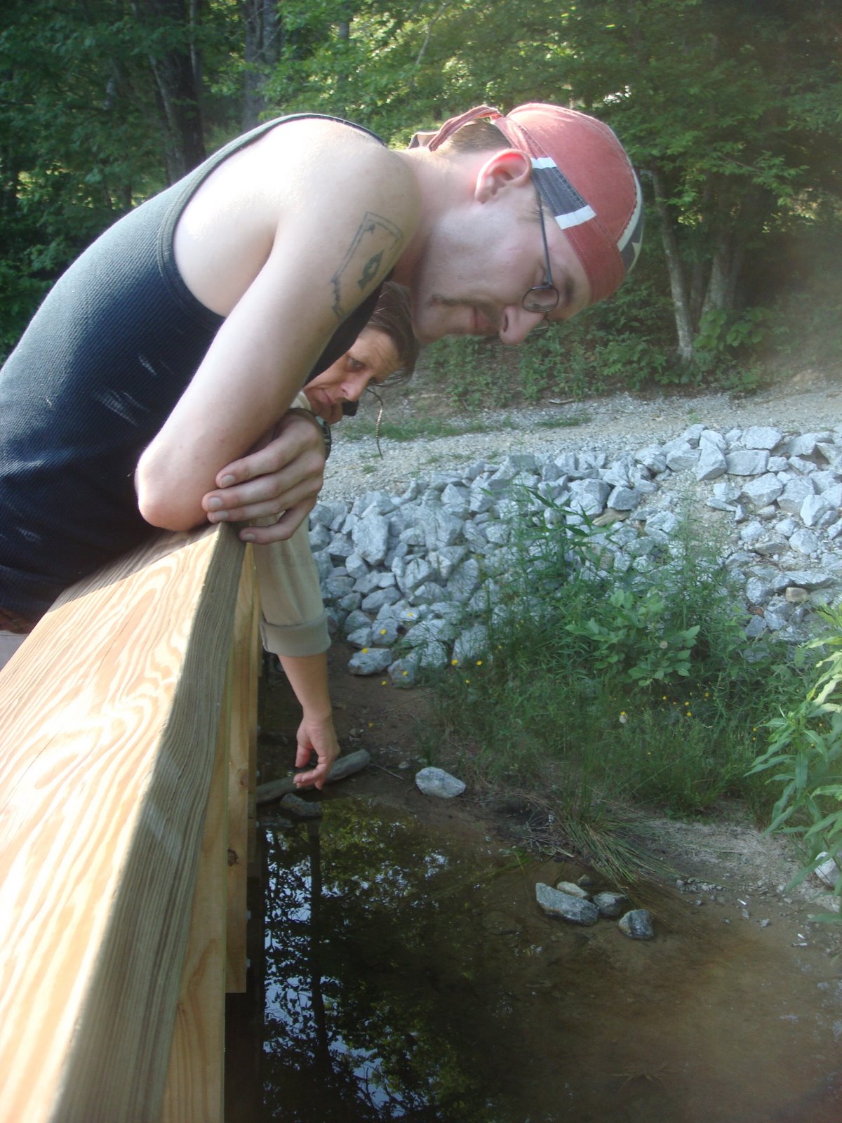 We encountered this couple at a lake. Please notice the handlebar mustache on him and the Confederate flag bandanna. She was raving about a “big, goddamn fish” she’d seen in the water: