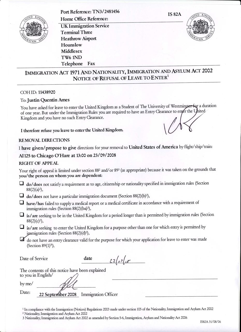 4 thoughts on “Access Denied – Detainment, IS 82A Forms, Notice Of Refusal Of Leave To Enter & More…