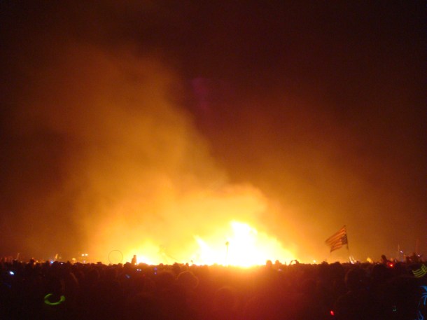 Fin de Man. Burners race in to celebrate around the fire.