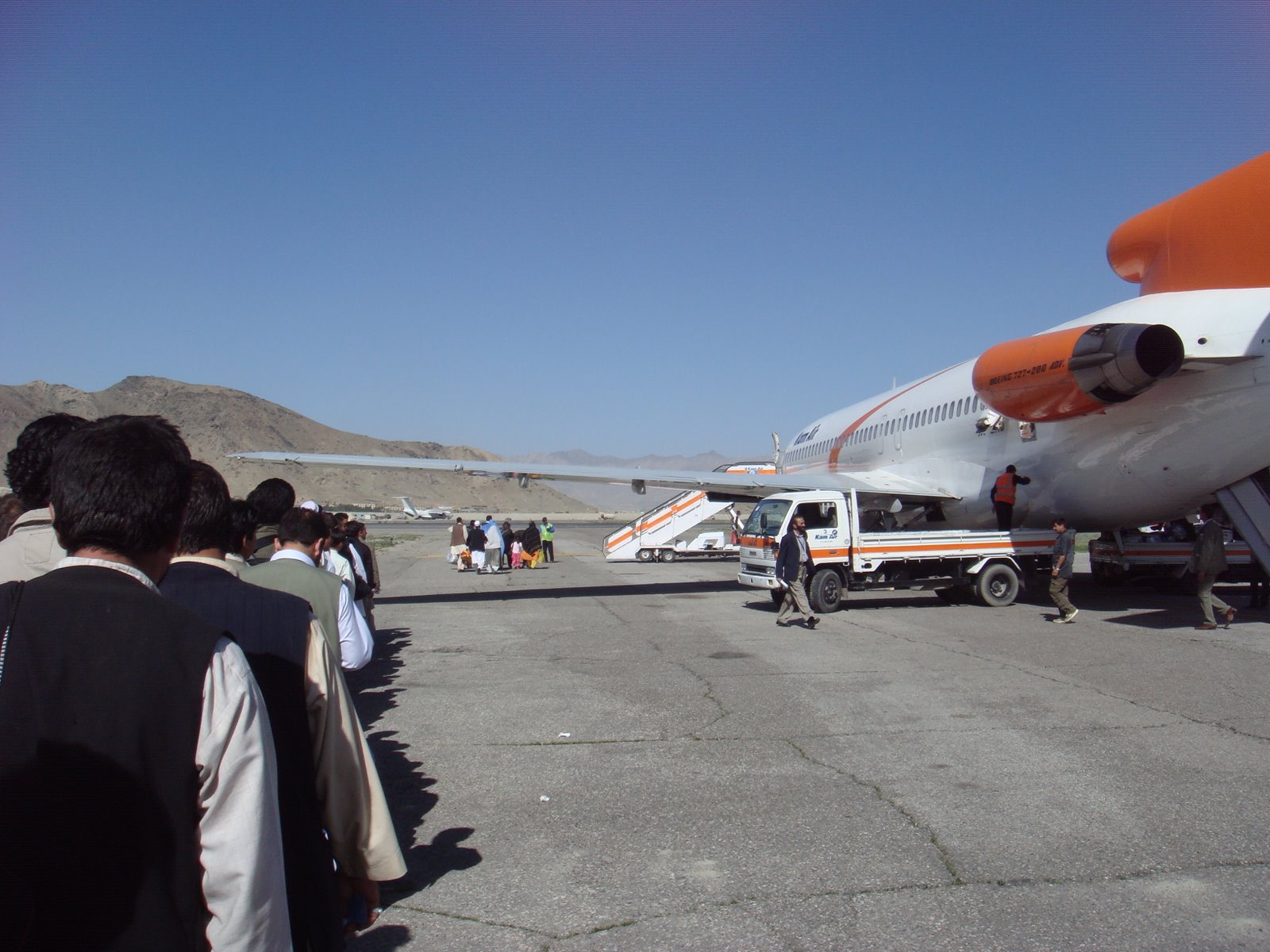 Finally cleared to walk out on the tarmac toward our airplane, here is a view of the Kabul airport: