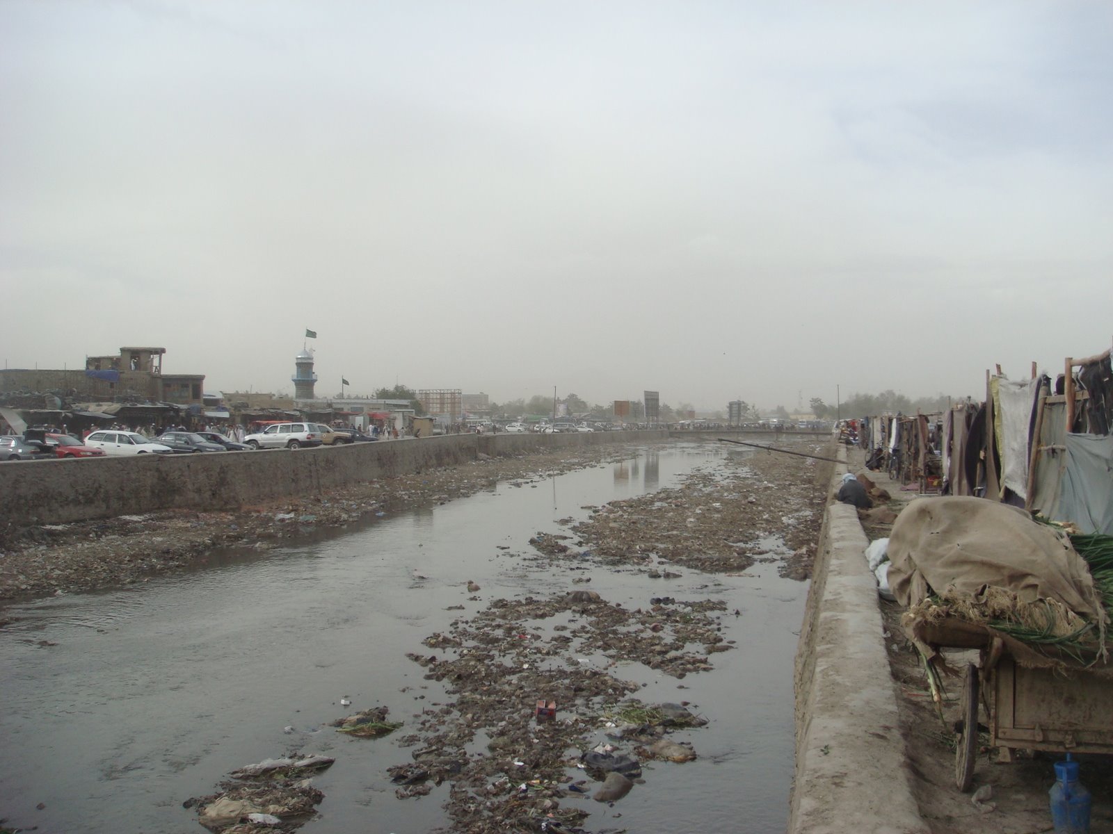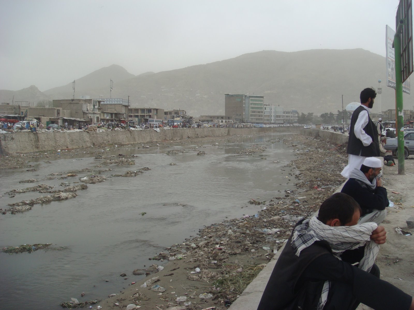 Some people actually live in the river area. The cost of housing in urban Kabul is very high compared to the countryside, and many people live in crumbling buildings and makeshift tents: