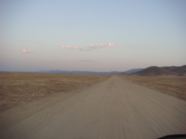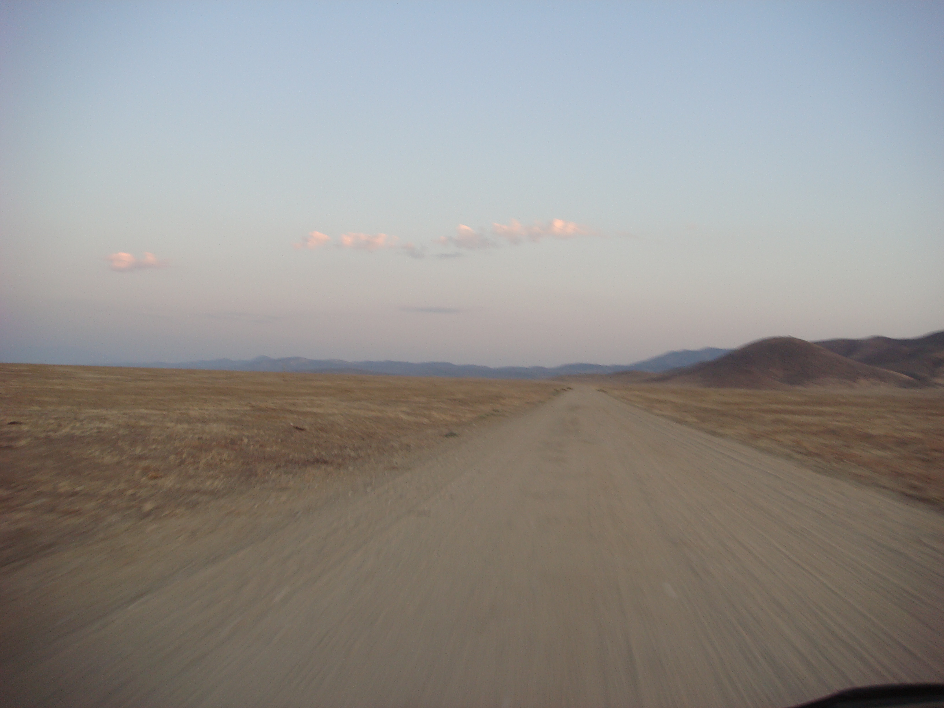 I snapped this picture after taking my Honda up to 117 m.p.h. here – the fastest I have ever gone on a dirt road. Cool road, huh? I had to ease off just after taking the picture though because I hit a section where the road was fairly washboarded and the back end of the car started getting really light and drifting.