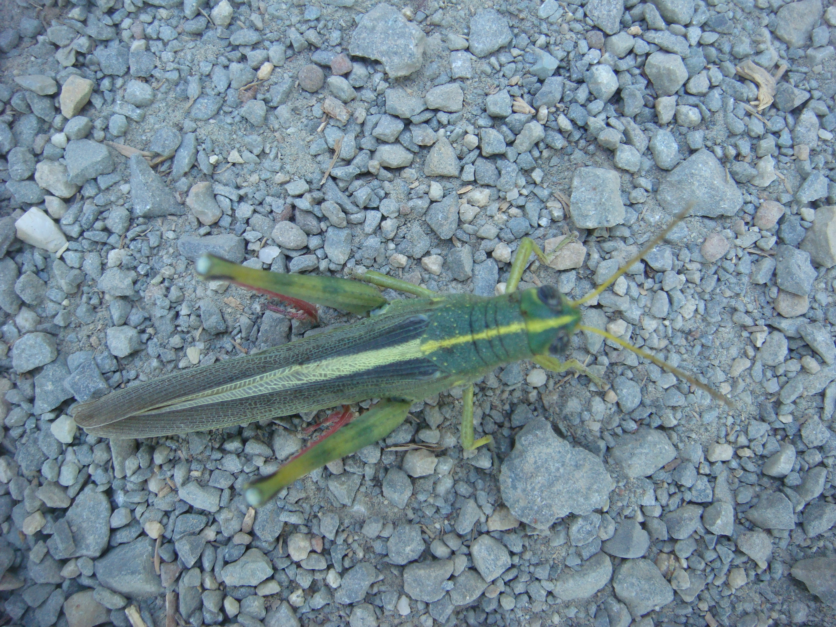 Sadie noticed this grasshopper on the road. After getting closer and closer to take its picture, I assumed it was dead, but after literally touching it, the grasshopper decided to be alive and hopped away.