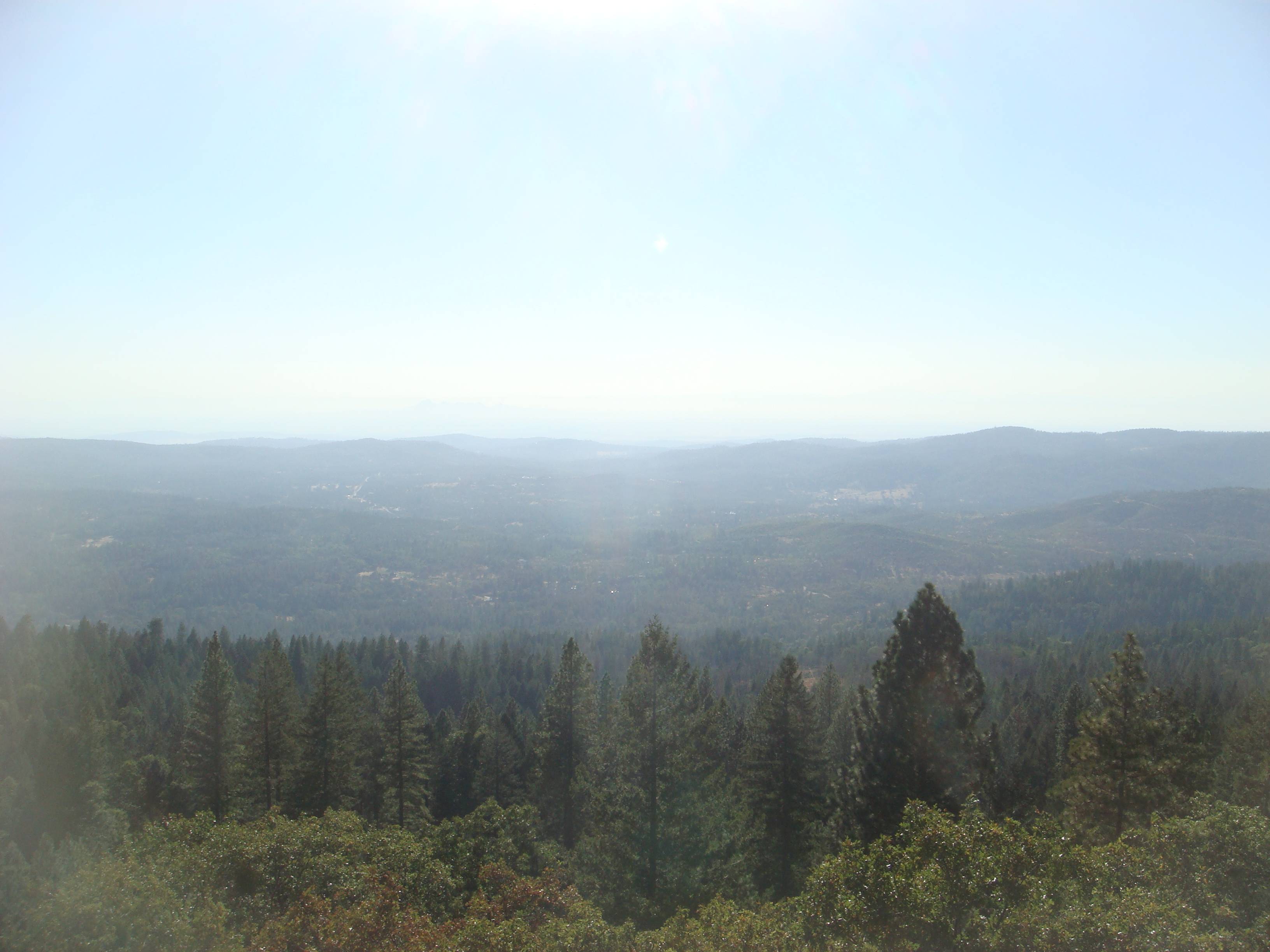 Here is the view from the top of Oregon Peak out toward Oregon House, the Central Valley, the Sutter Buttes and, according to the volunteers in the tower, one can even see the steam rising from the geysers in Calistoga on a clear day… Unfortunately, this was a hazy day. So, next time I venture up here, I will obtain a better picture.