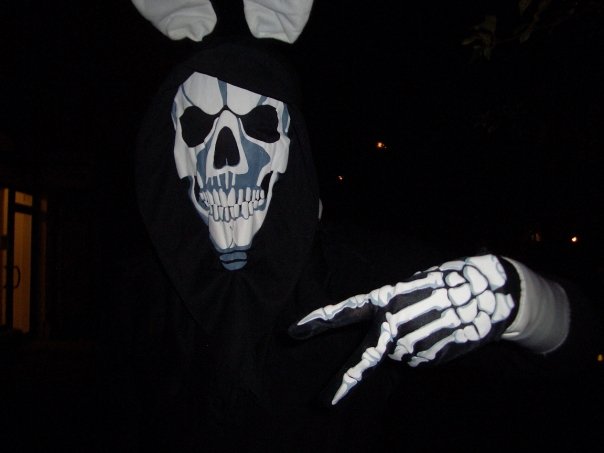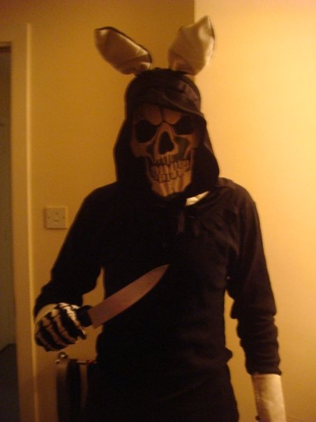 This was my costume for Halloween this year. I didn’t intend to look like “Frank” in Donnie Darko when I started out. It just turned out that way, but I was quite pleased with the results. And chicks loved it. I got compliments everywhere we went.