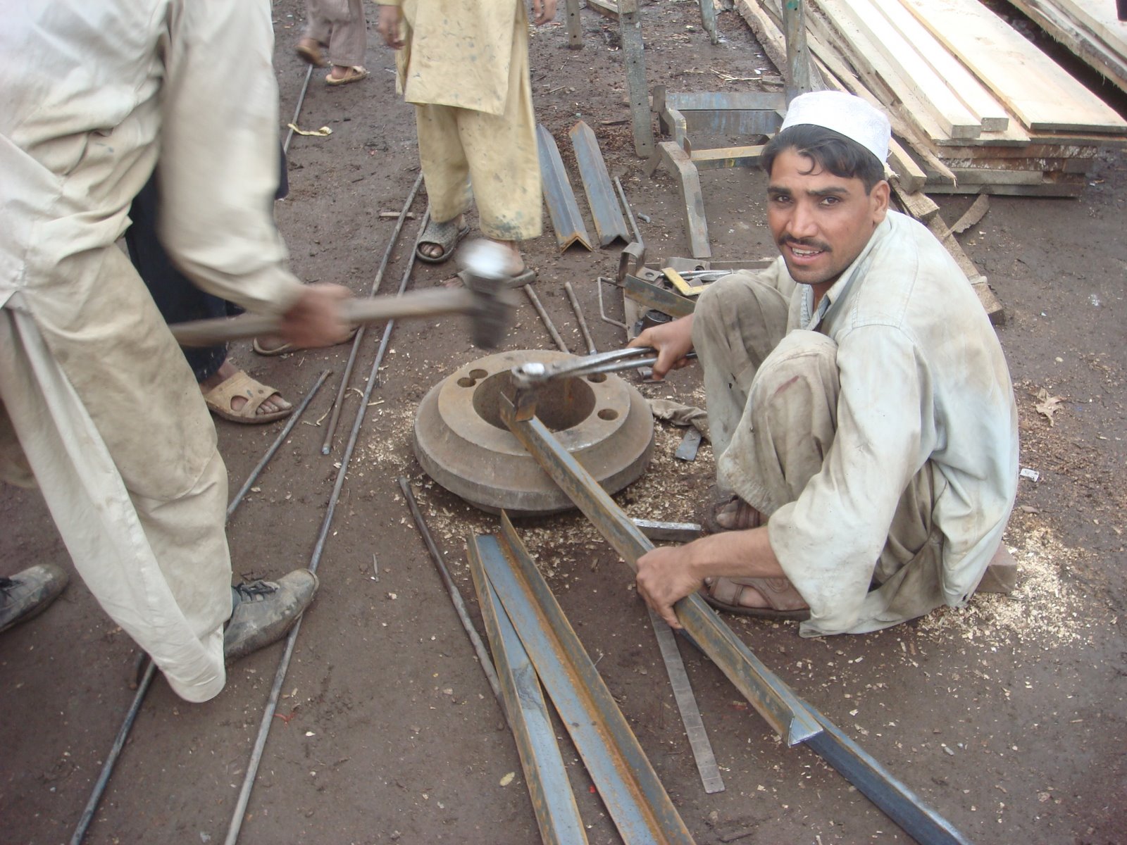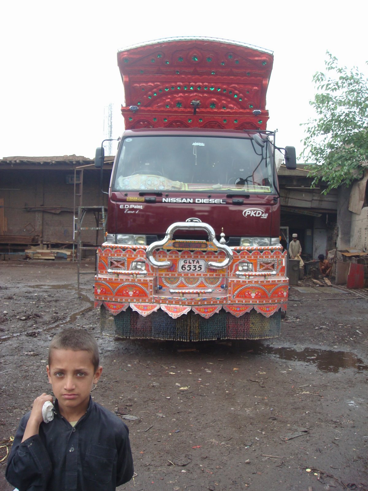 Pakistanis are famous for decorating their vehicles. The transport trucks, used to ferry goods primarily between Pakistan and Afghanistan are particularly extravagant. As we were stuck in Peshawar due to the fighting in the Khyber Pass, a visit to industrial Peshawar to see these trucks being constructed seemed a solid idea.