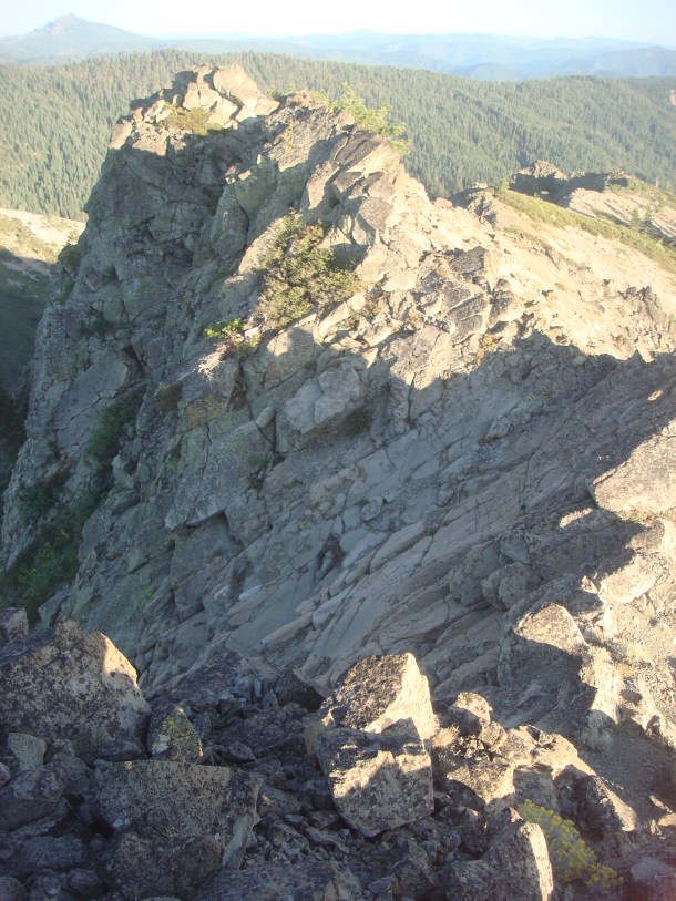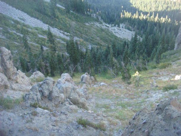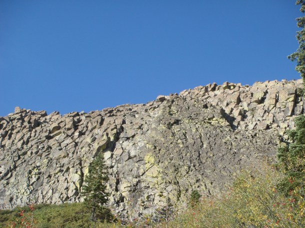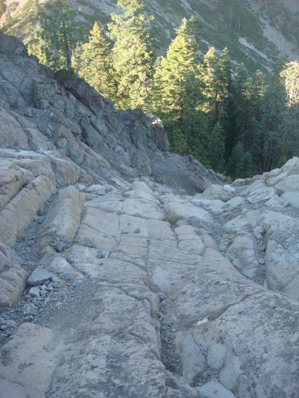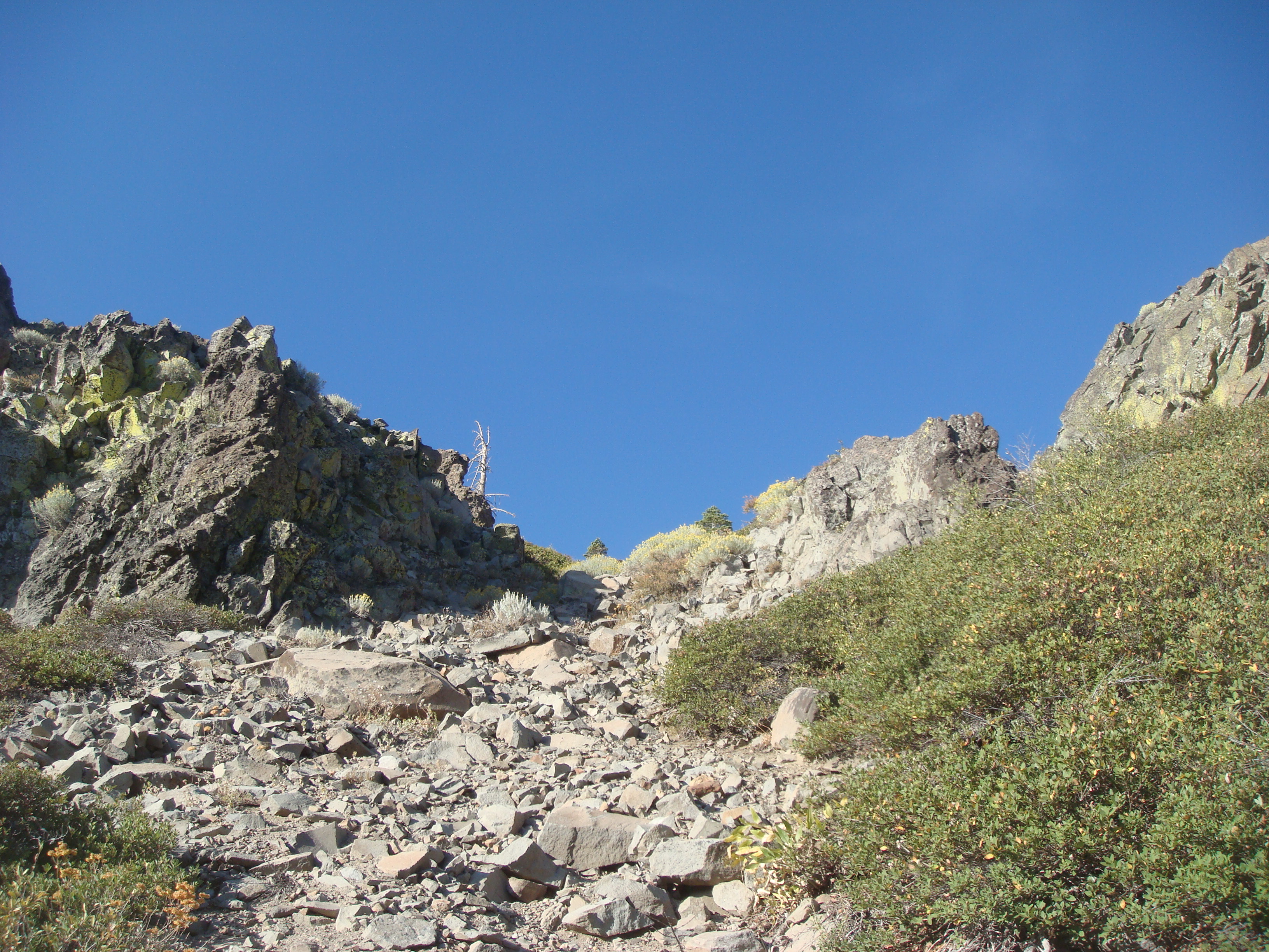 But now back to the awesome formation mentioned above – On the way up, I scrambled up the rock slide area, but this is a situation where you take two steps forward and slide 1.9999999 steps back. So, you might find it more expedient to just go straight up the cliff face.
