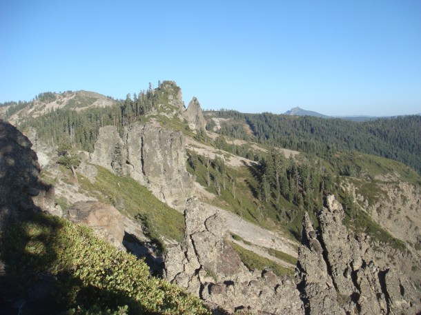 A view on the other side of Chimney Rock where a similar formation can be found.