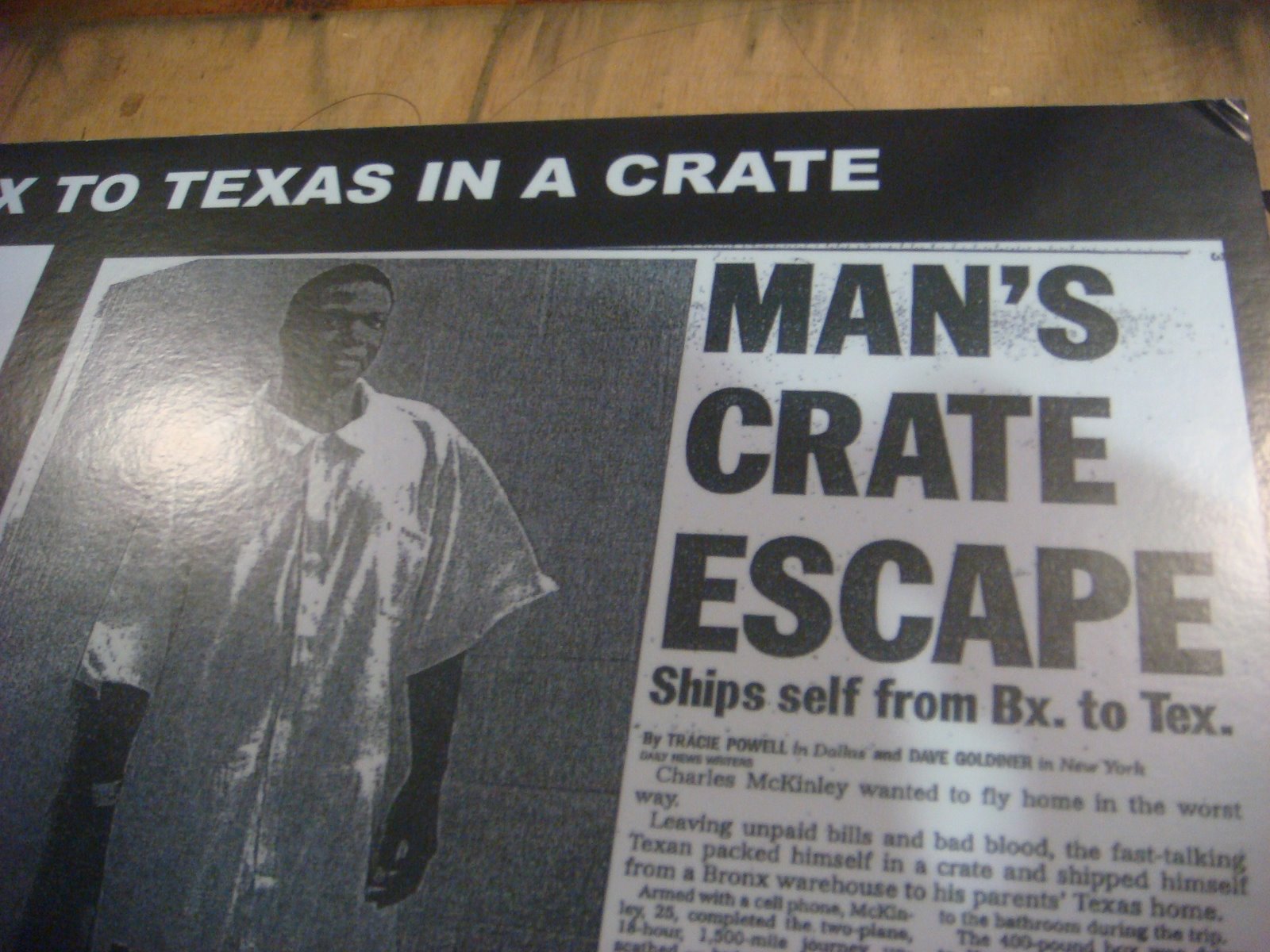 This is an interesting story… Charles McKinley (pictured below) decided that he was tired of living in The Bronx, New York and wished to return home to Texas. Thinking he would save some money, Mr. McKinley equipped himself with a mobile phone and crammed into a box to ship himself to his parents’ home in Dallas (a friend dropped the box off at FedEx). The box ended up weighing over 400 pounds and so the cost of shipment worked out to over $500 for the 18-hour journey. When Charles McKinley was delivered to his parents’ front lawn he pried himself out of the box, much to the astonishment of the FedEx deliveryman.