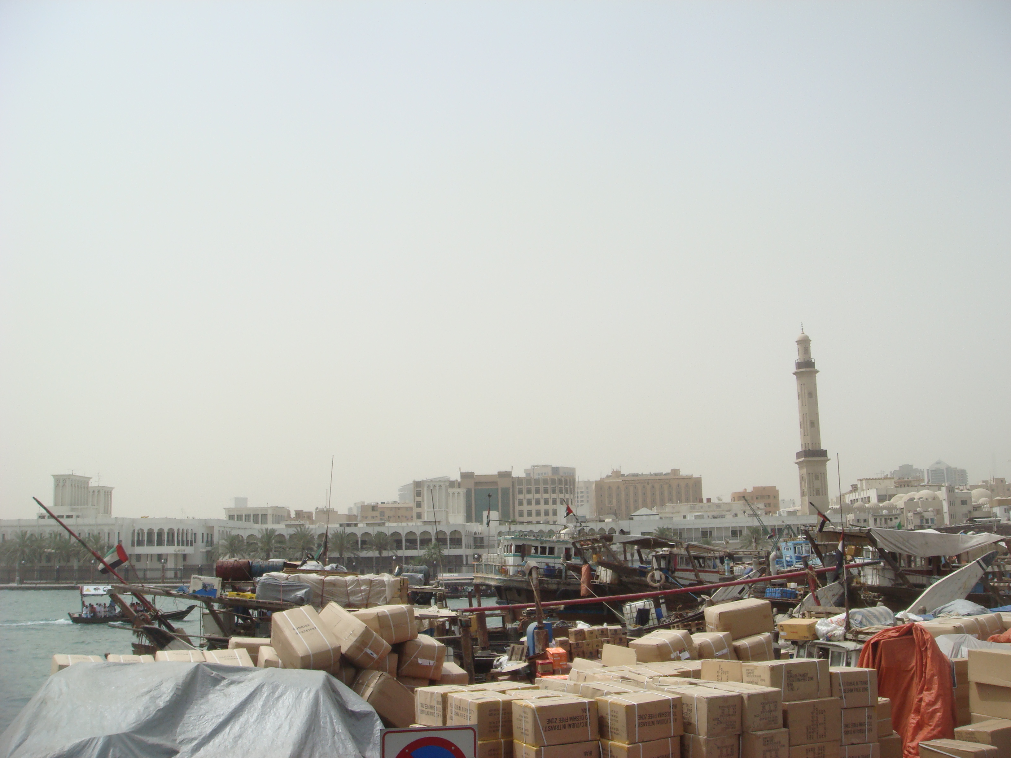 And below is Dubai Creek today. Sheik Rashid, the father of modern Dubai, dredged the Creek in the 1950s establishing Dubai as the trading center for goods coming into the Middle East. If you go down by the creek today there are Iranian Dhows – the Middle East’s answer to the Chinese Junk – bringing rice, rugs and refrigerators back and forth across the Persian Gulf. Iran’s ports are about a two-day drift away for these wooden ships. Kuwait and Iraq a day or two more. Bahrain, Qtar, Oman much closer.