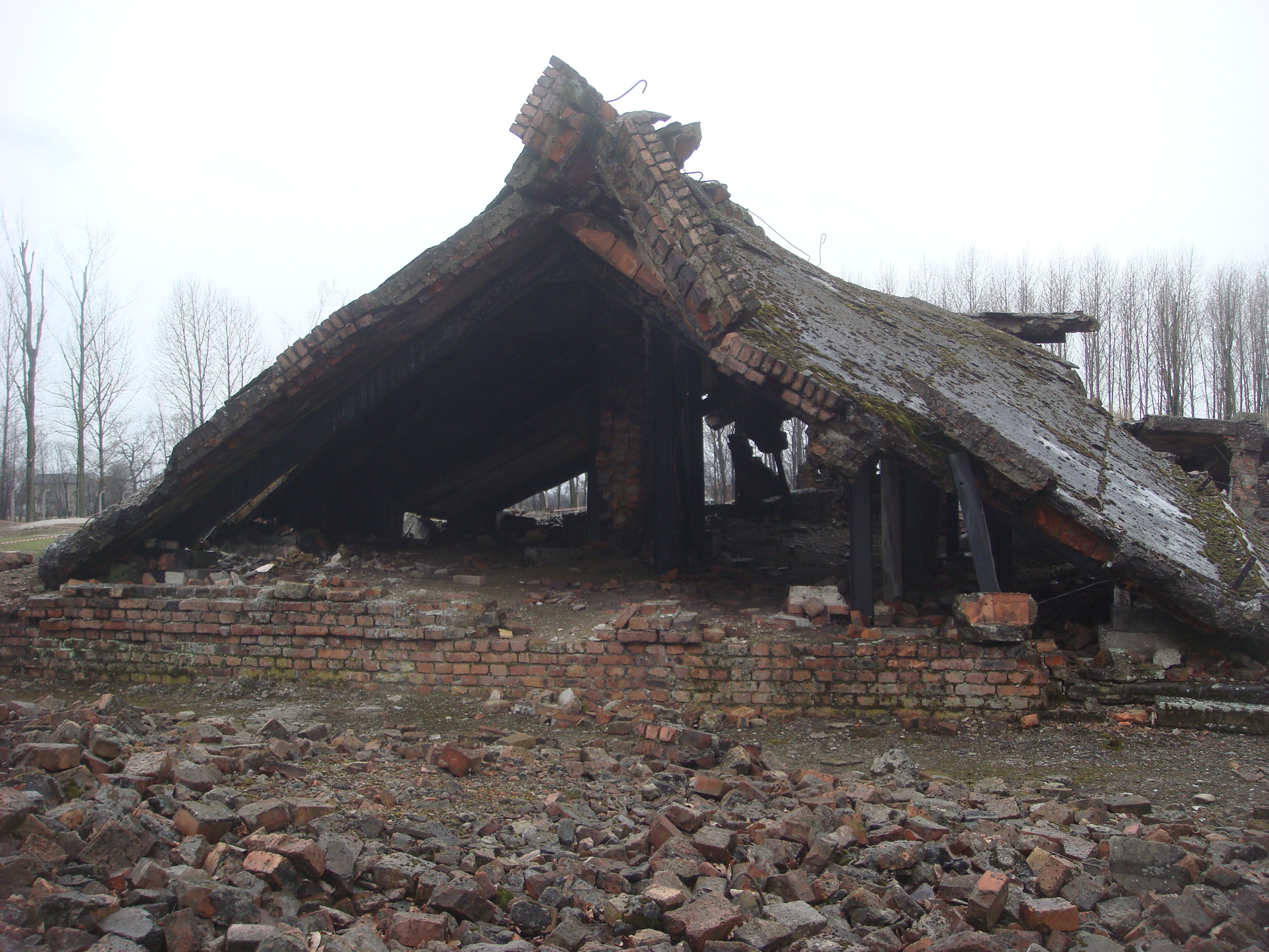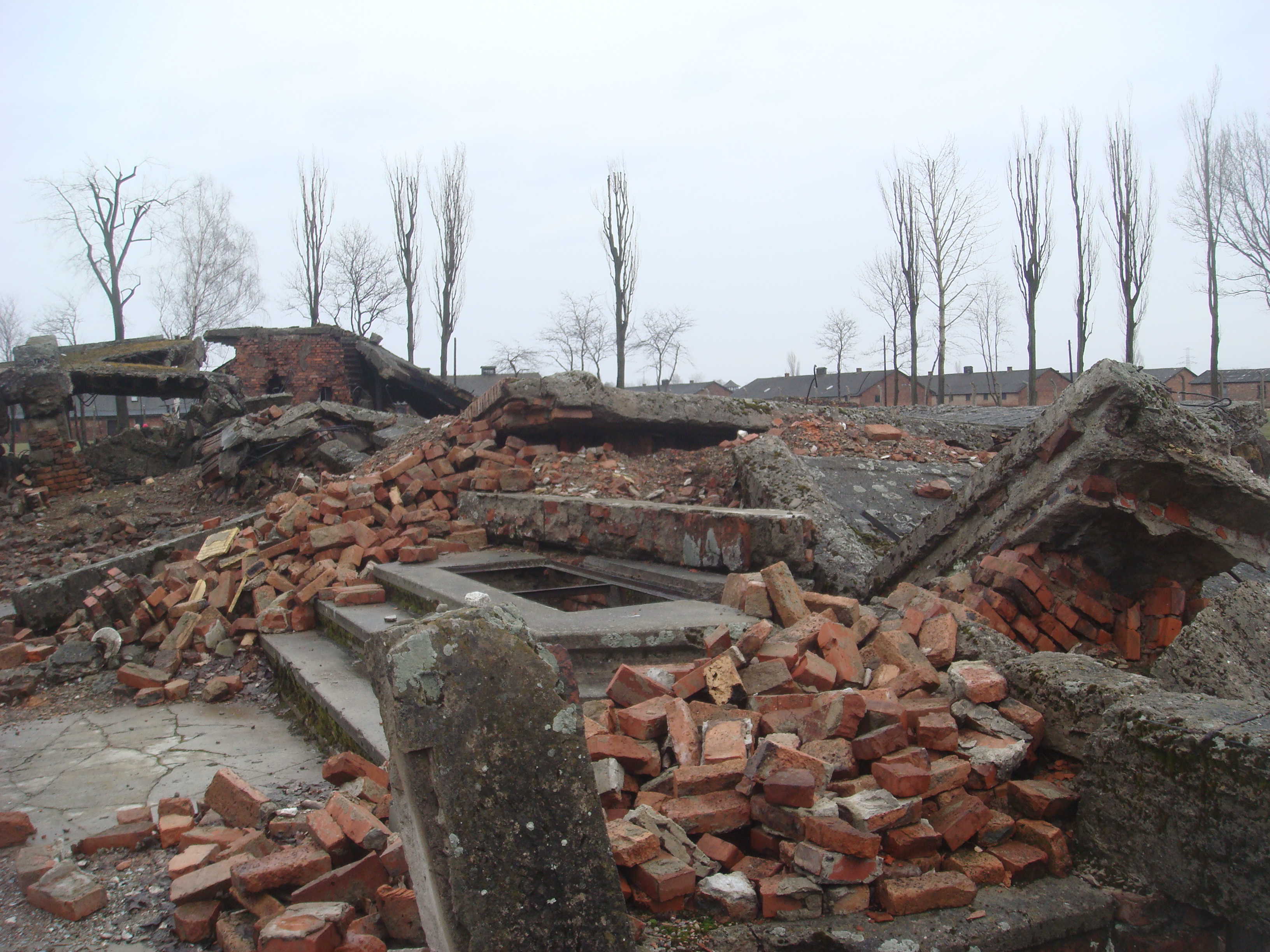 In an effort to conceal their mass extermination program, the Nazis dynamited the Birkenau gas chambers as they retreated from the Soviet Red Army. The Germans were not successful in covering up their campaign of genocide, but they were successful in destroying the gas chambers which is why they are in the state seen below: