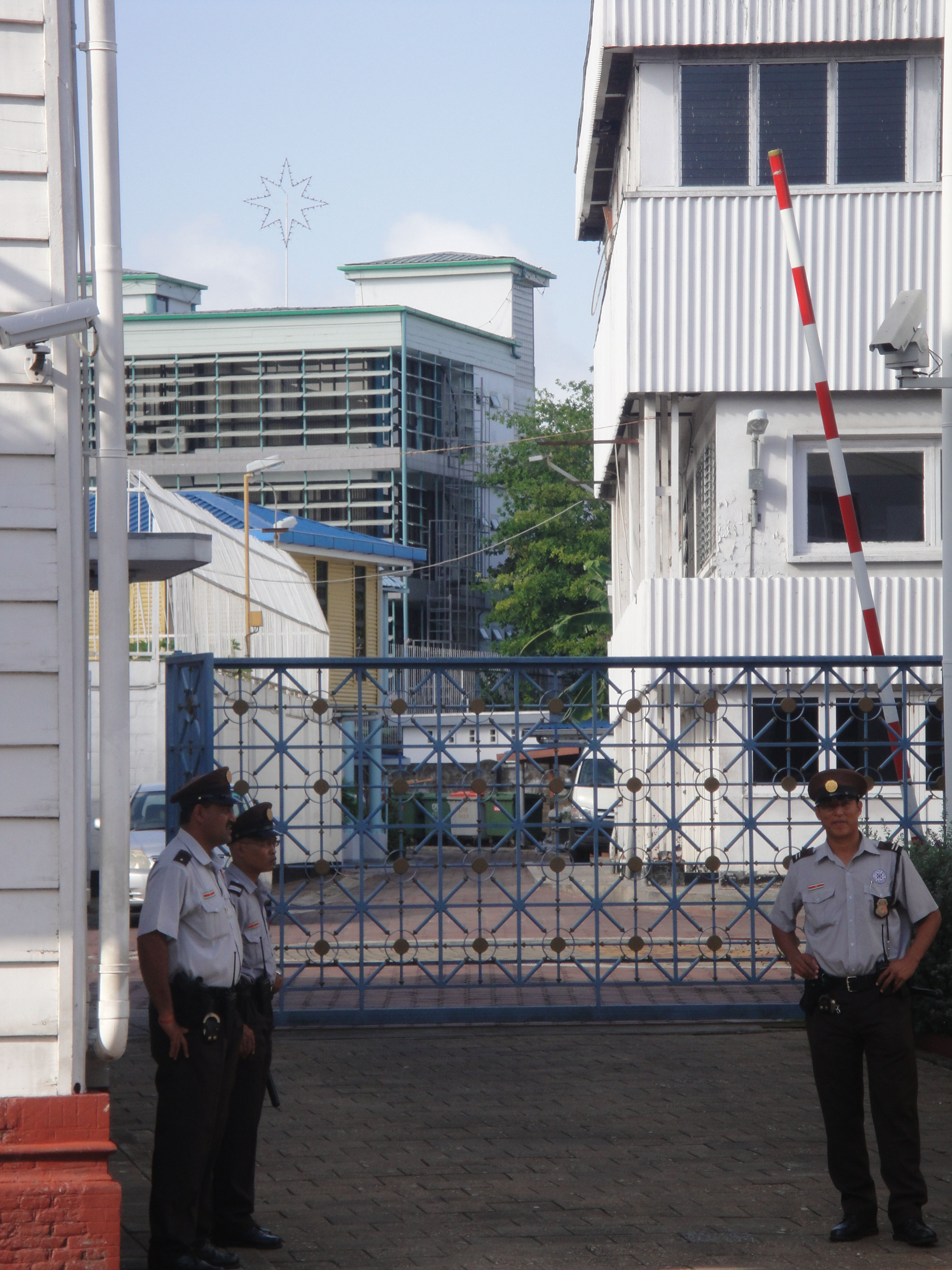 The strategy of the French seems to be to keep just enough military and police personnel around to prevent trouble-makers from getting any clever ideas around French sites of interest, such as the Guiana Space Centre (usually referred to as CSG or Centre Spatial Guyanais where the European Space Agency, the French space agency CNES, and the commercial Arianespace company conduct launches from) at Kourou which is where the picture below was taken: