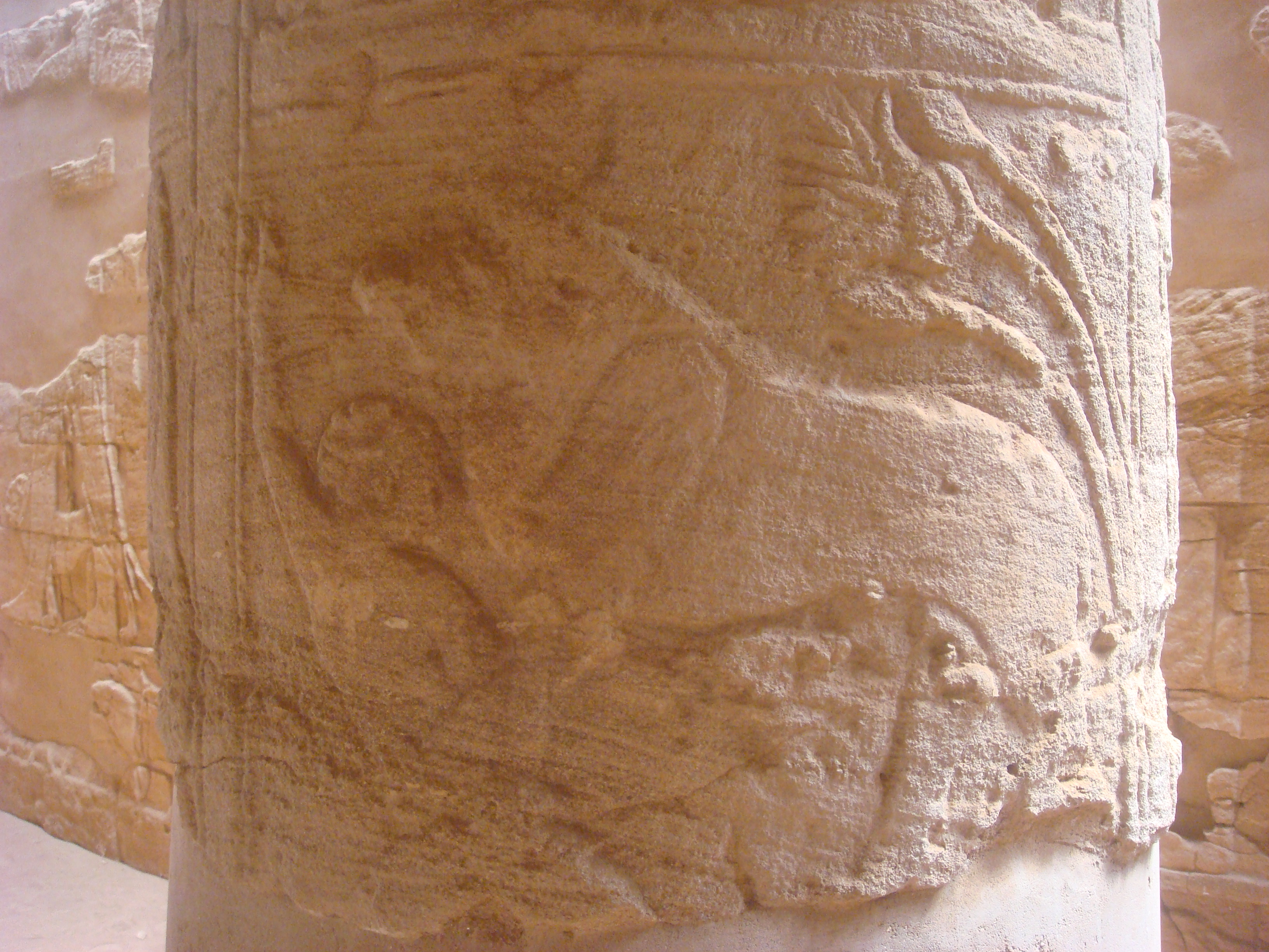 If you look closely, you can see that a human is being taken out by a lion in this carving: