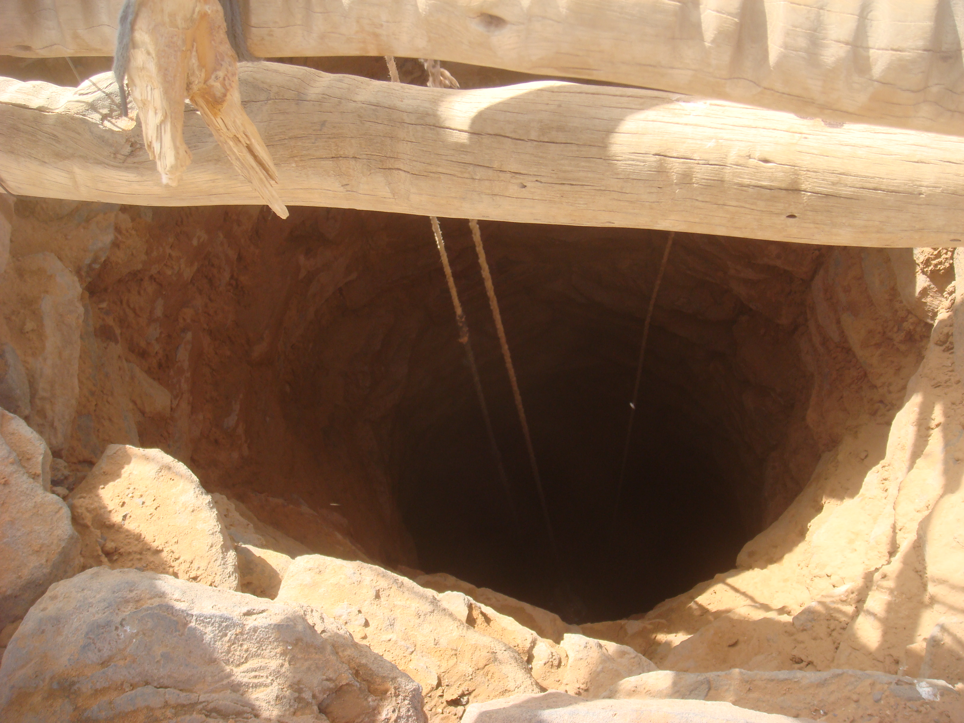 The depths of the well… Unlike the last well I described, the water was drawn out of this one by hand and so the Italian and I pitched in to haul a few bucketfuls of water out – much to the amusement of the nomads!