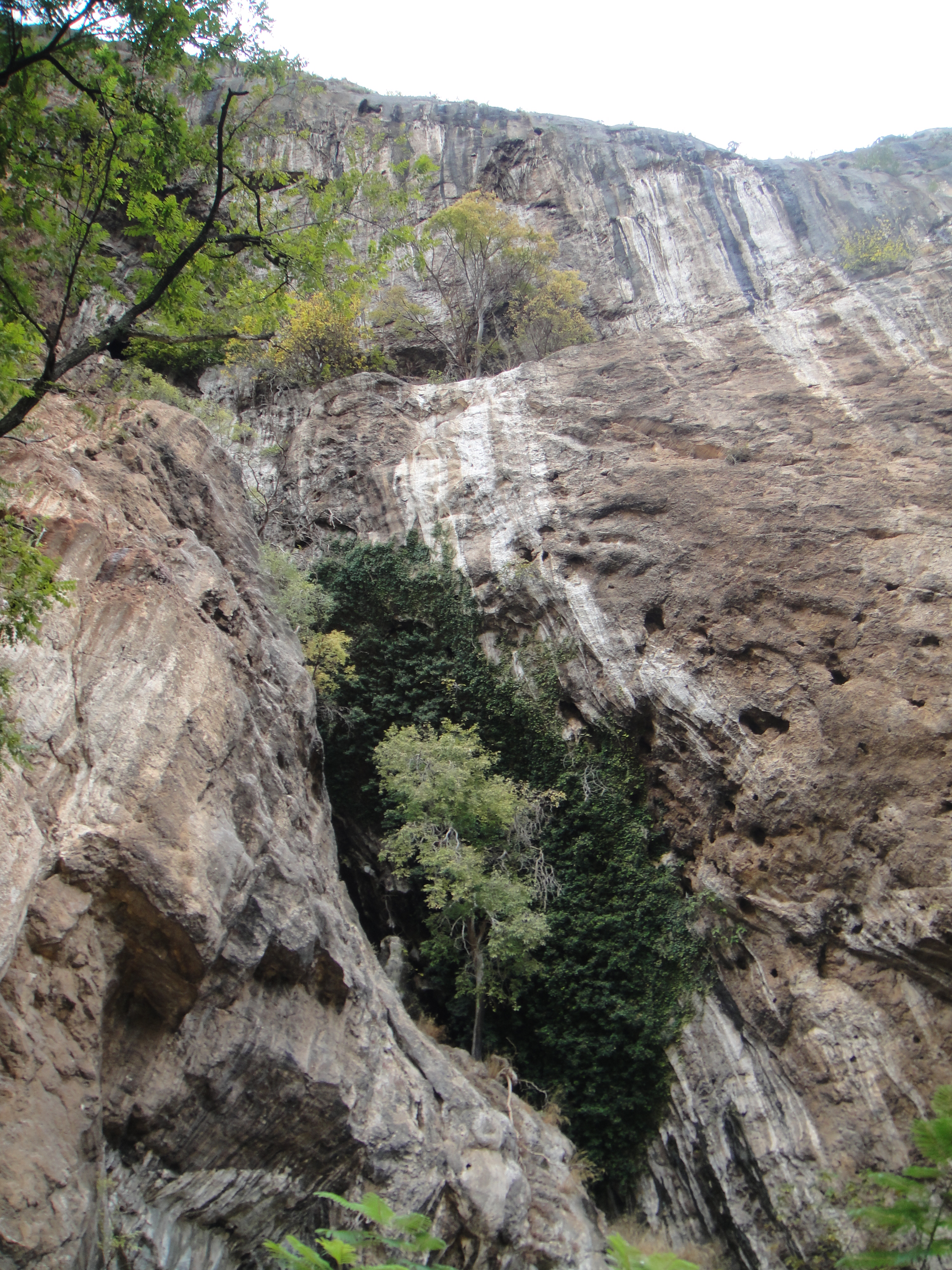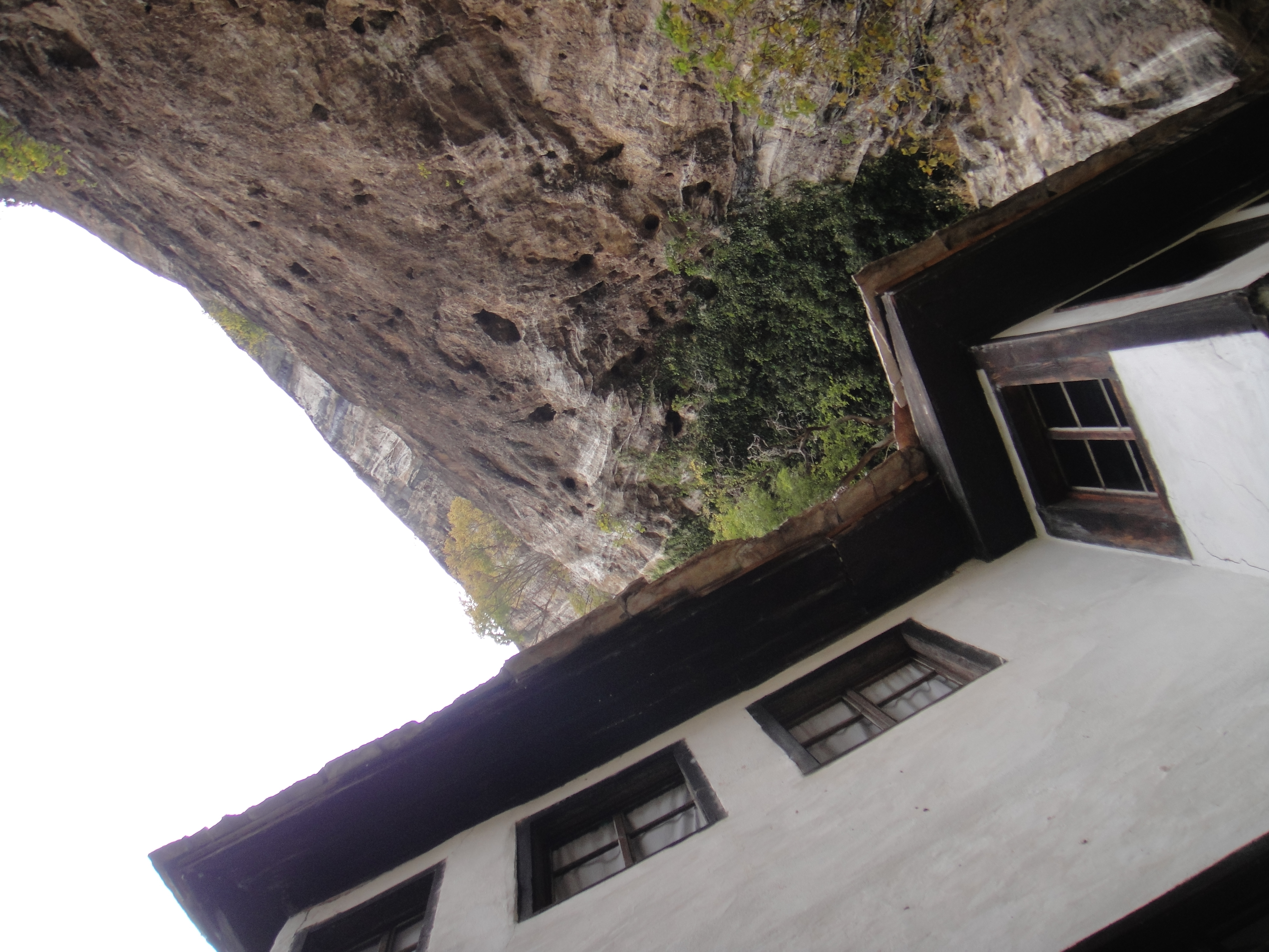 I took this picture straight up while standing next to the tekija, so you can see how serious the cliff overlooking the scene is: