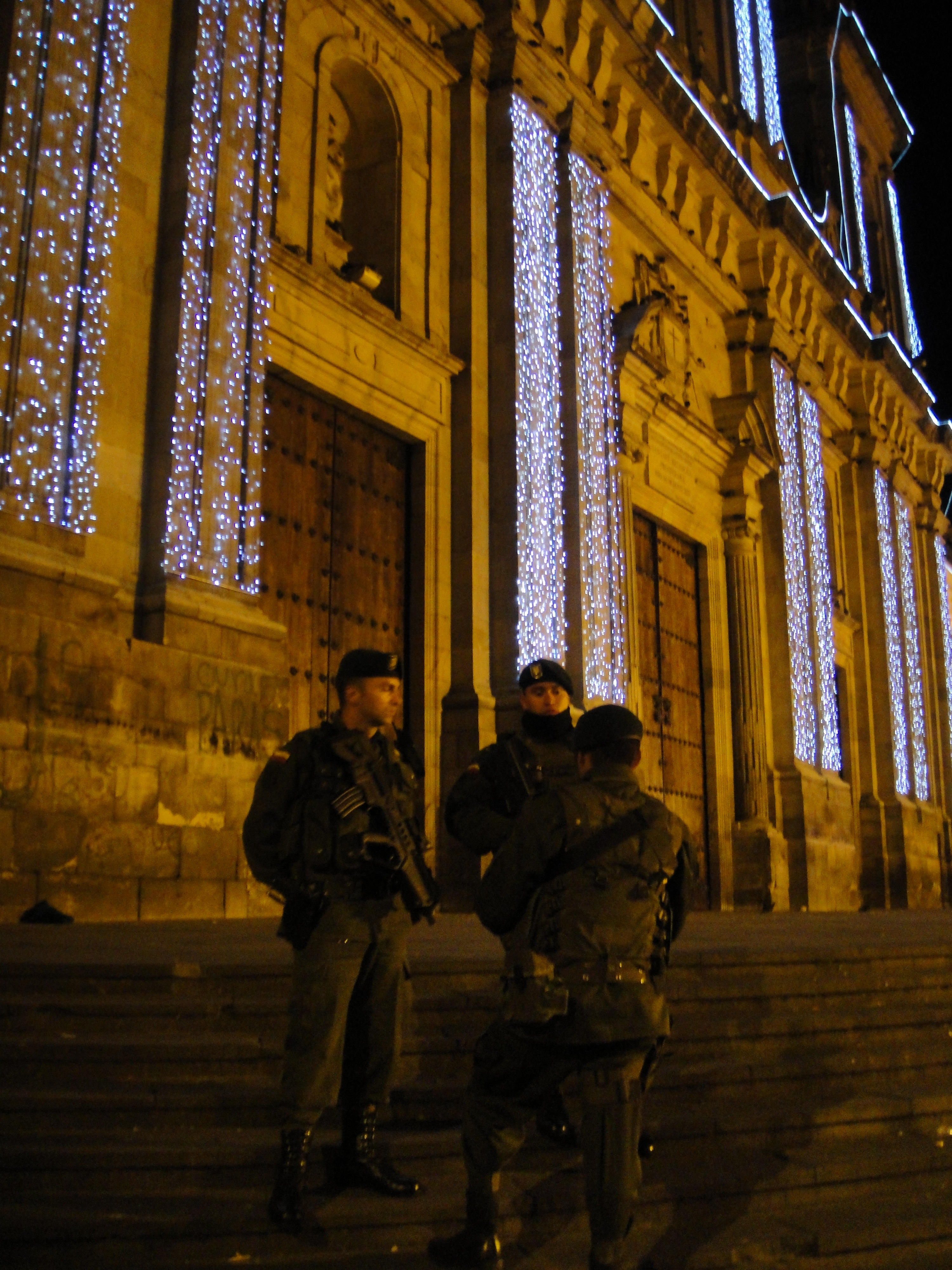 One of the first things one will notice upon arriving in Bogota are the soldiers and policemen. They are everywhere: