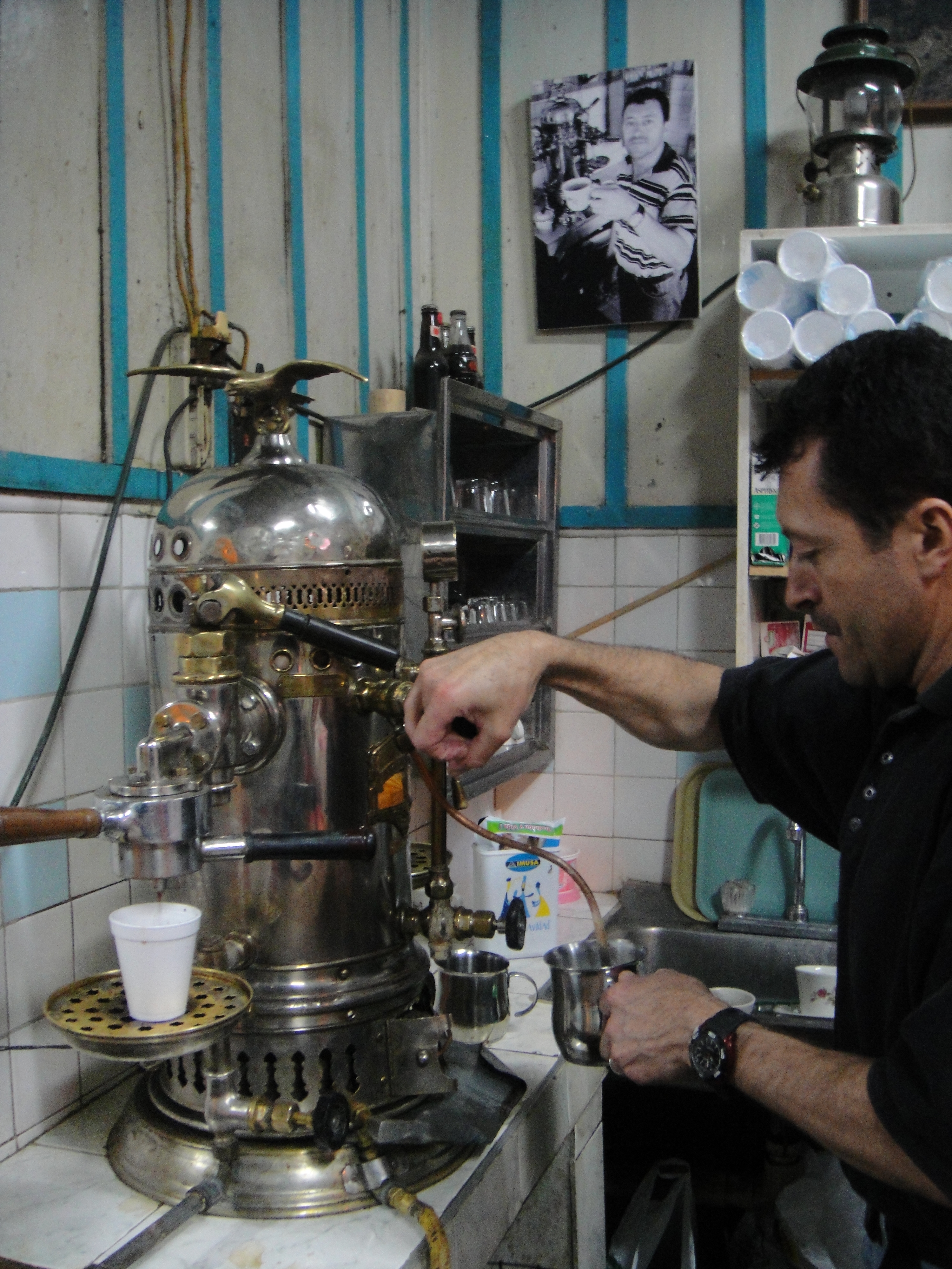 Have you ever seen a coffee machine like this? It looks like a steam engine: