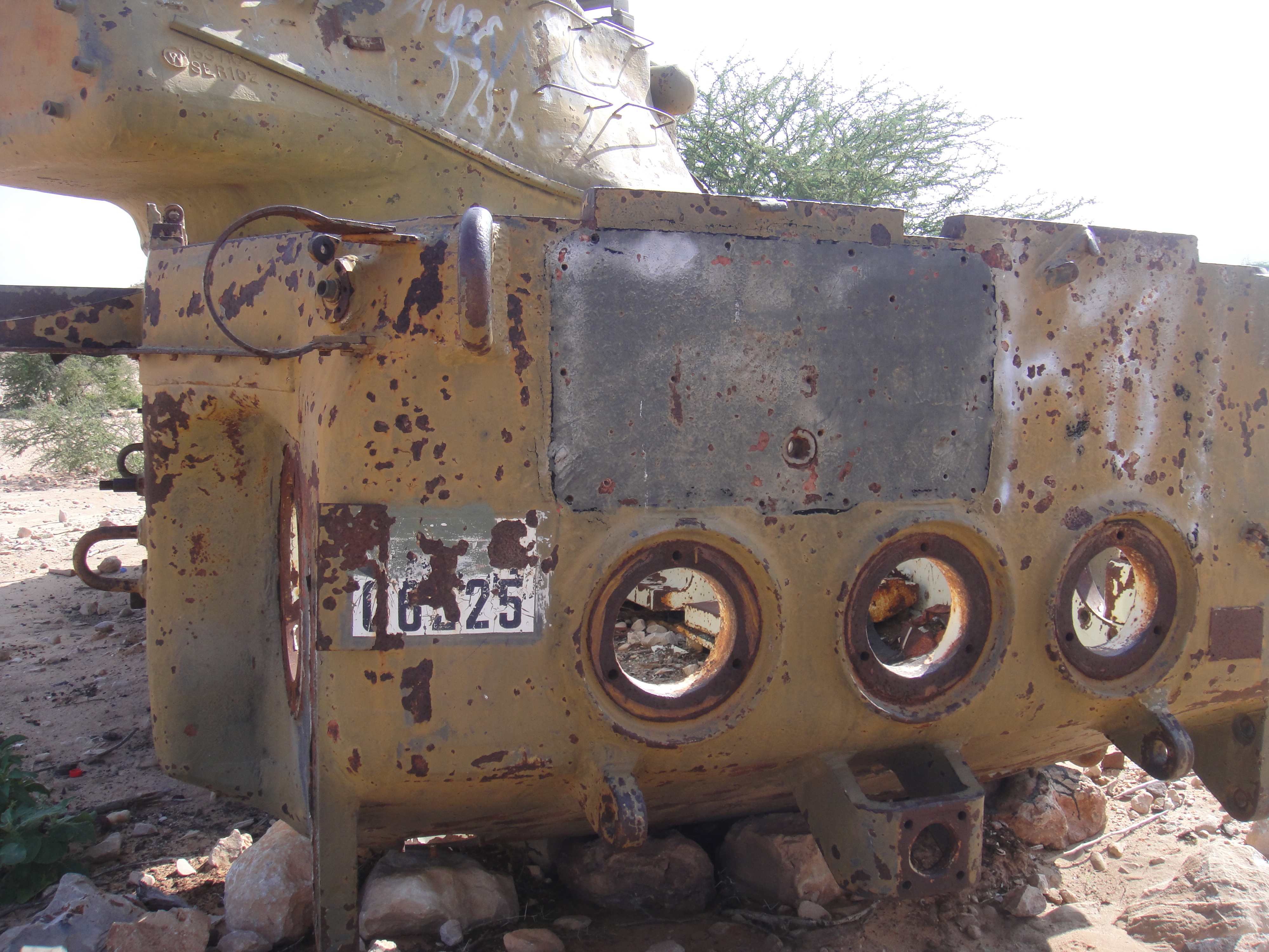 While driving through Somalia, we came across this battered tank – a casualty of the Somali civil war: