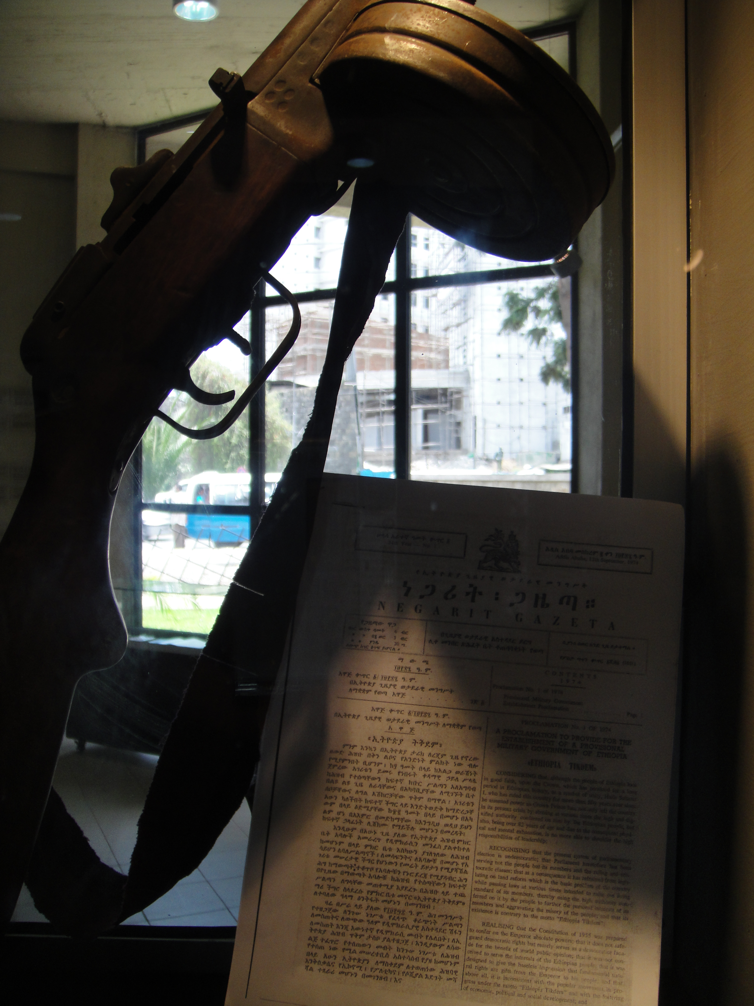 On 12 September 1974 Emperor Haile Selassie was deposed by Derg forces – In this photograph hanging in the museum, he appears in has last picture, being hustled away to a military prison in the back of a VW Beetle: