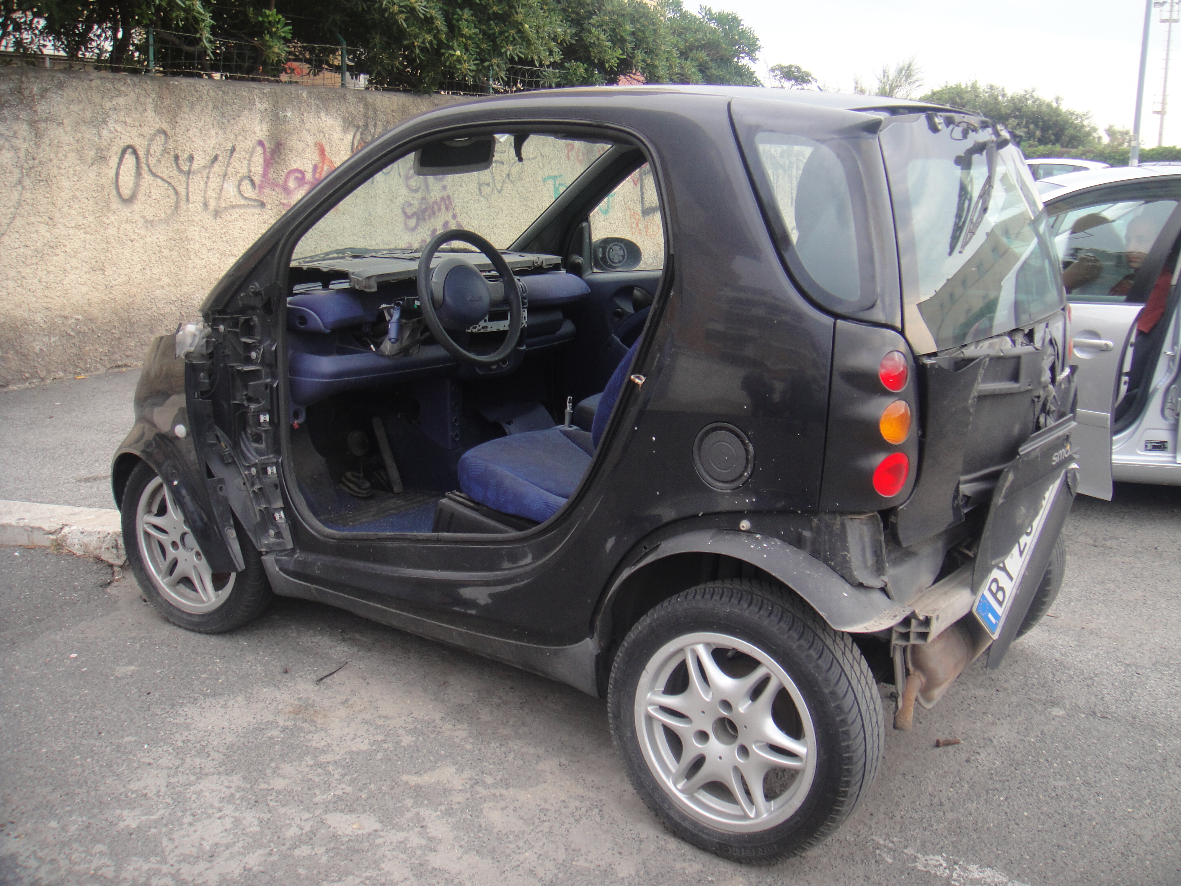 A stolen Smart car that was stripped and abandoned in Piazza Gasparri: