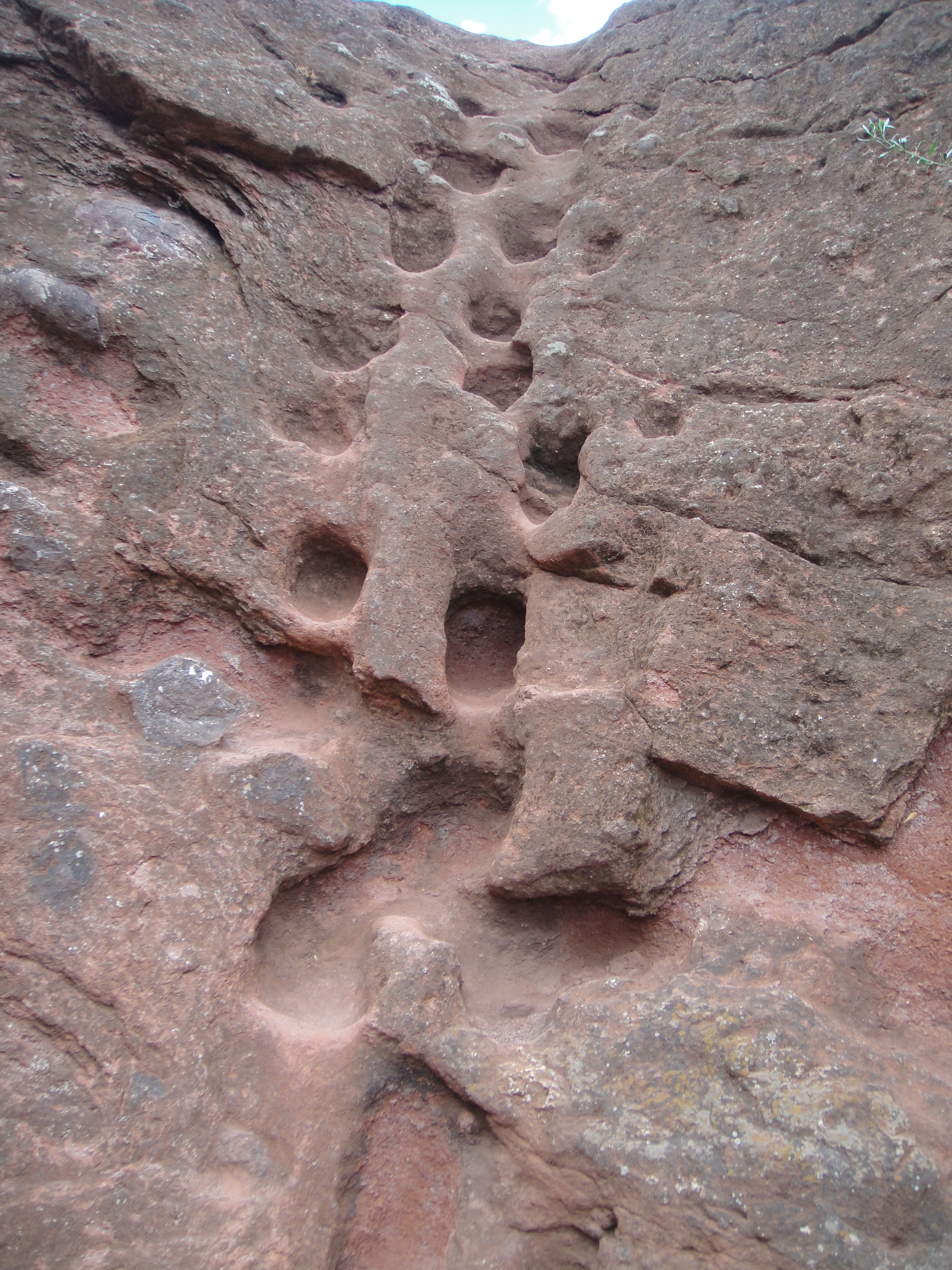 I took this picture close to the wall of a crevasse that was carved out in order to show you its texture. You can still clearly see the marks left from the chisels and hammers of the workers 1,000 years ago: