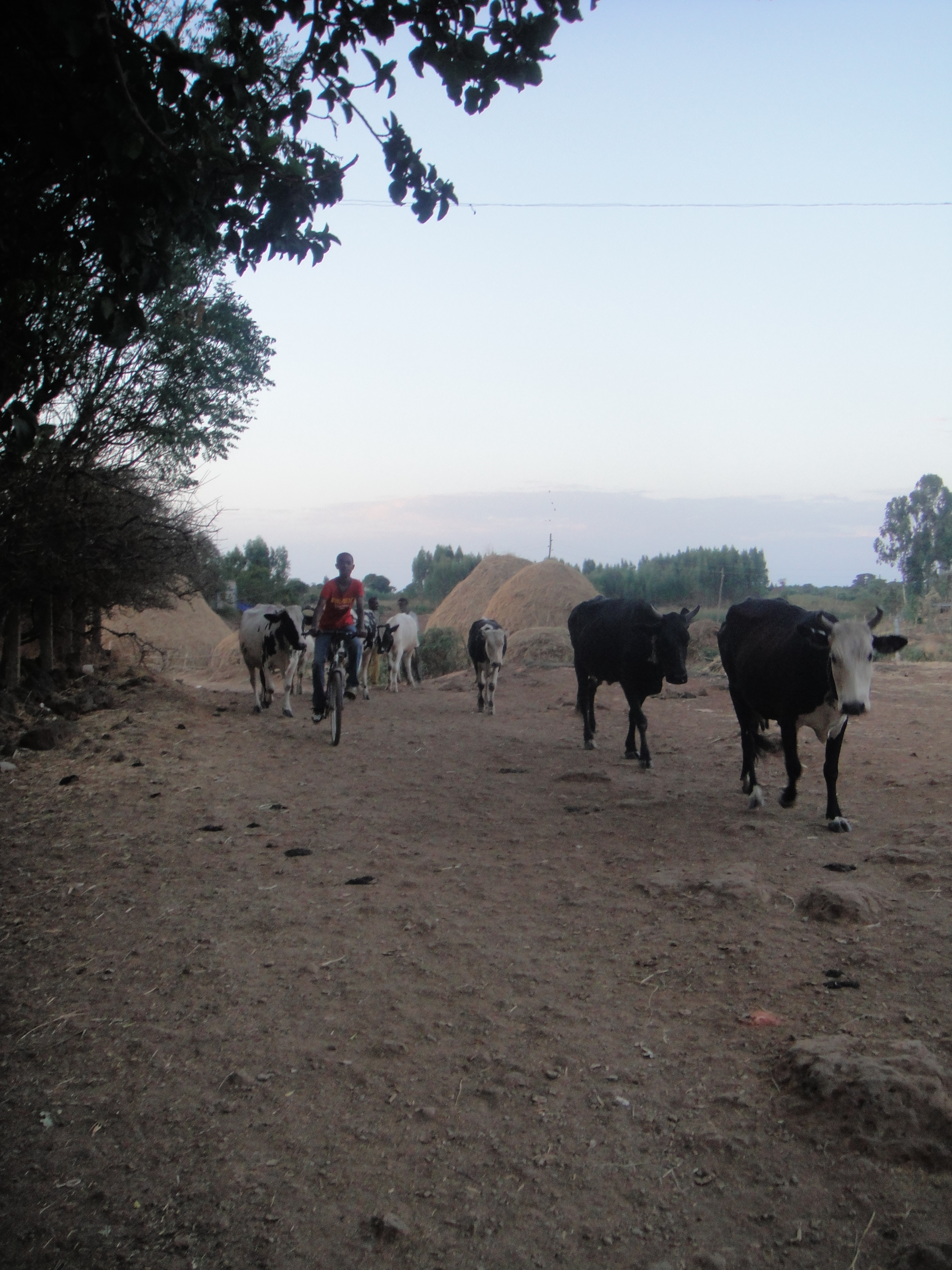 A cattle drive through the streets of Bahir Dar… Note the cowboy astride the bicycle rather than a horse – whatever works, right?