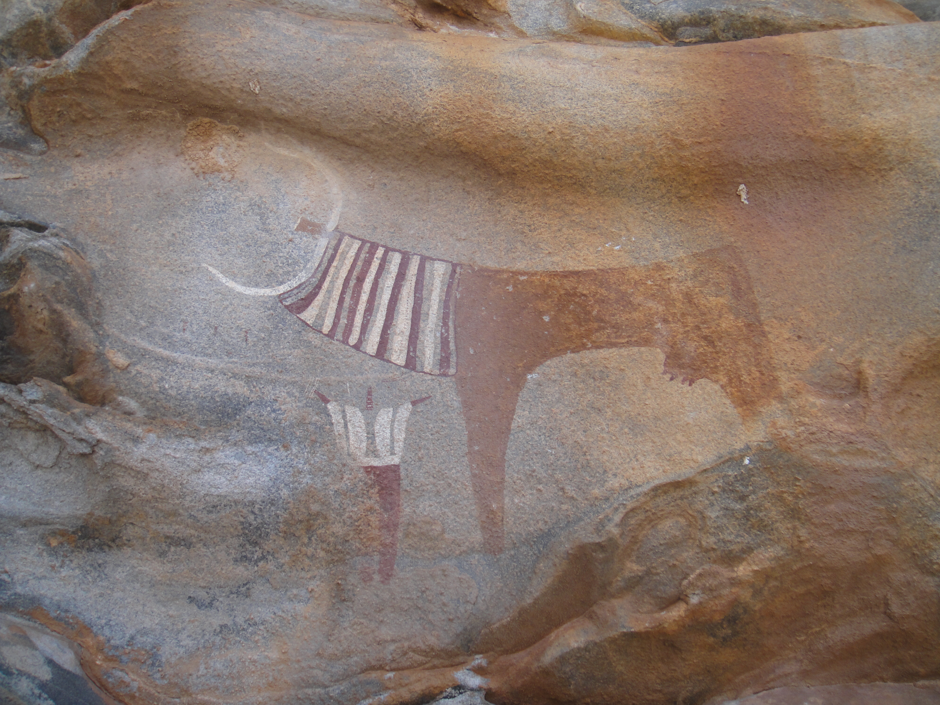 Representing humans and animals, hundreds of remarkable neolithic rock art paintings in perfect condition adorn the walls of several interconnected caves and shelters. Some paintings exceed one meter in length and their state of preservation is exceptional. This significant site was only brought to light in 2003, following research conducted by a team of French archaeologists.