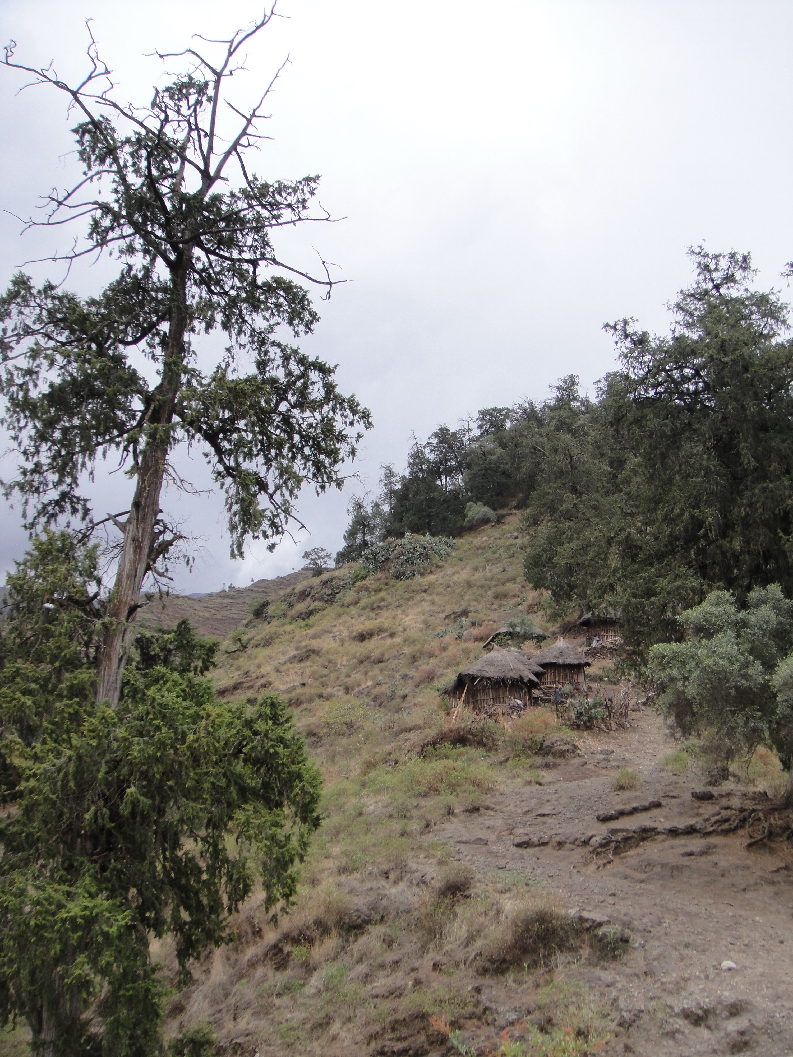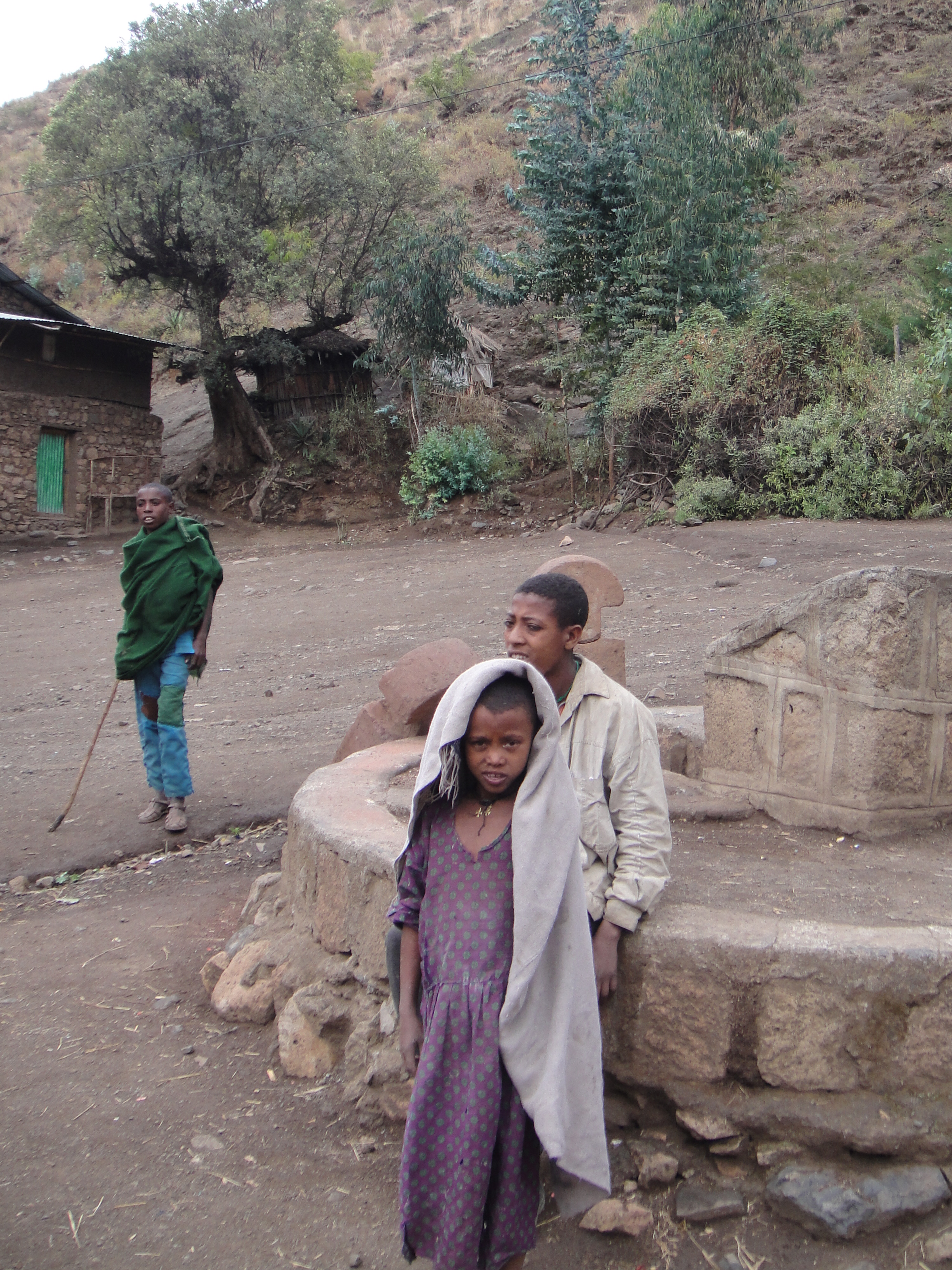 The village at the base of the mountain containing Yemrehanna Kristos seems desperately poor. When we arrive children are playing soccer in the main square with a piece of garbage and a squadron of deformed adults and children shuffle out to beg from us as soon as we exit our vehicle. A few indifferent men are squatting near a wall chewing khat while others are curled up asleep in the mud.