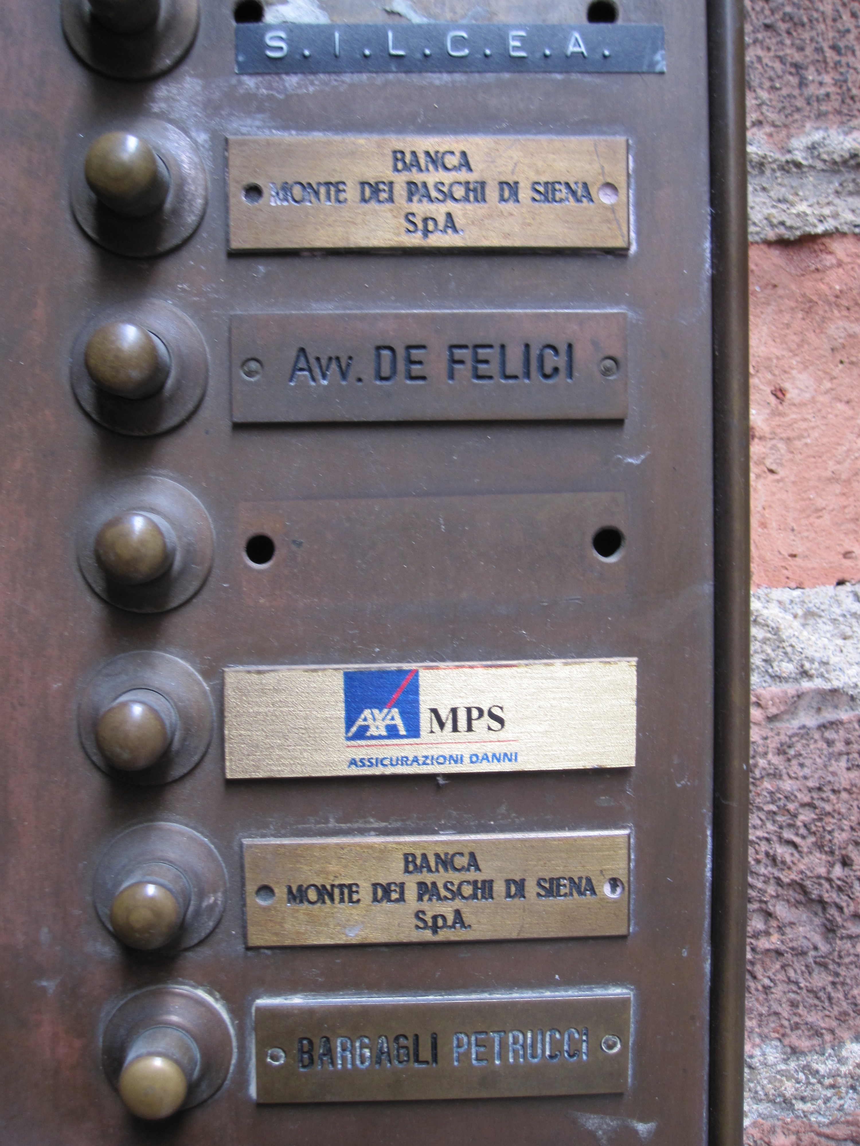 Monte dei Paschi di Siena has offices all over the city and they’re all attractive. Here is another: