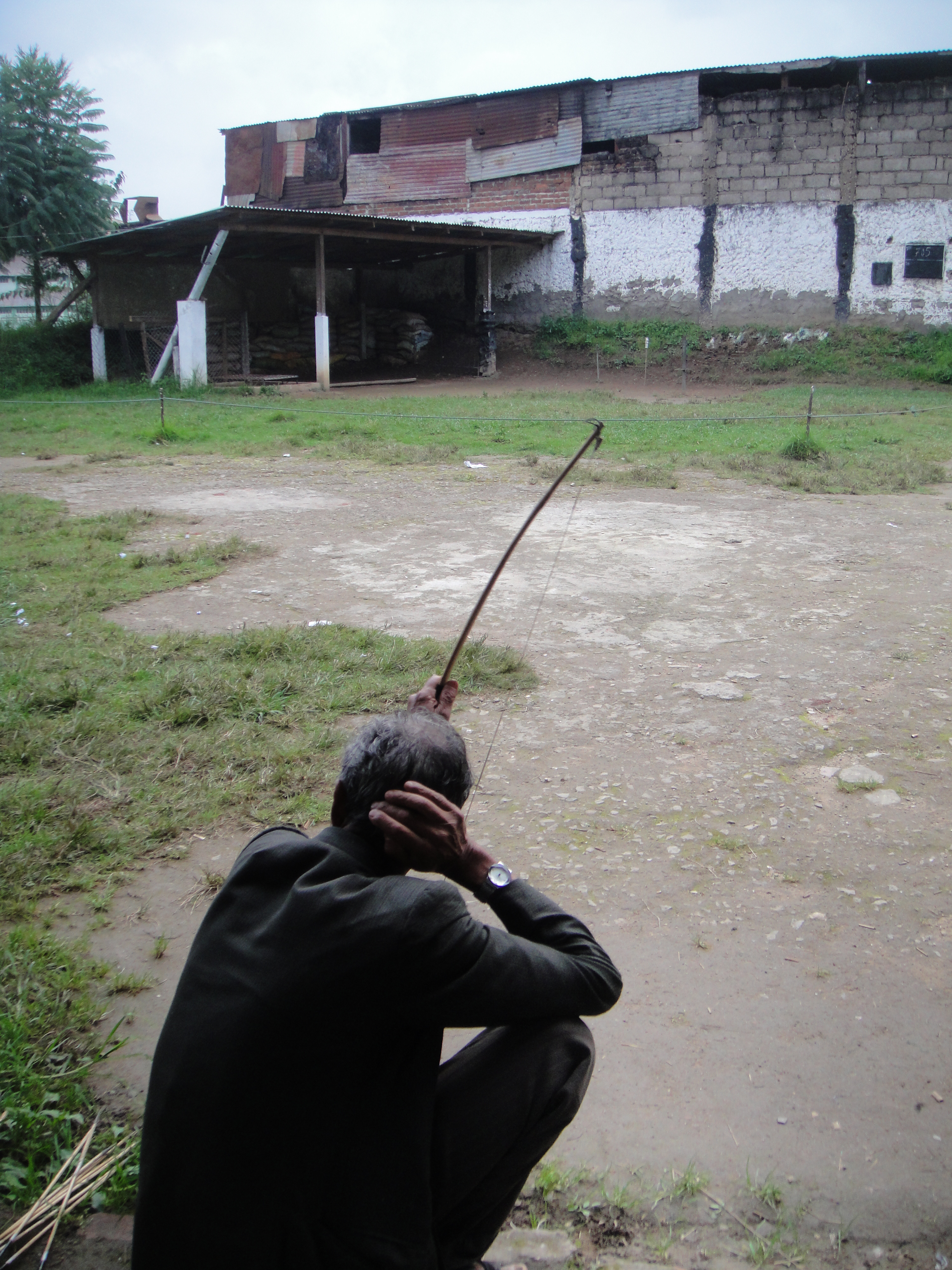Once the canvas curtain is raised, there is a rush to retrieve the arrows on the ground and to examine the straw target…