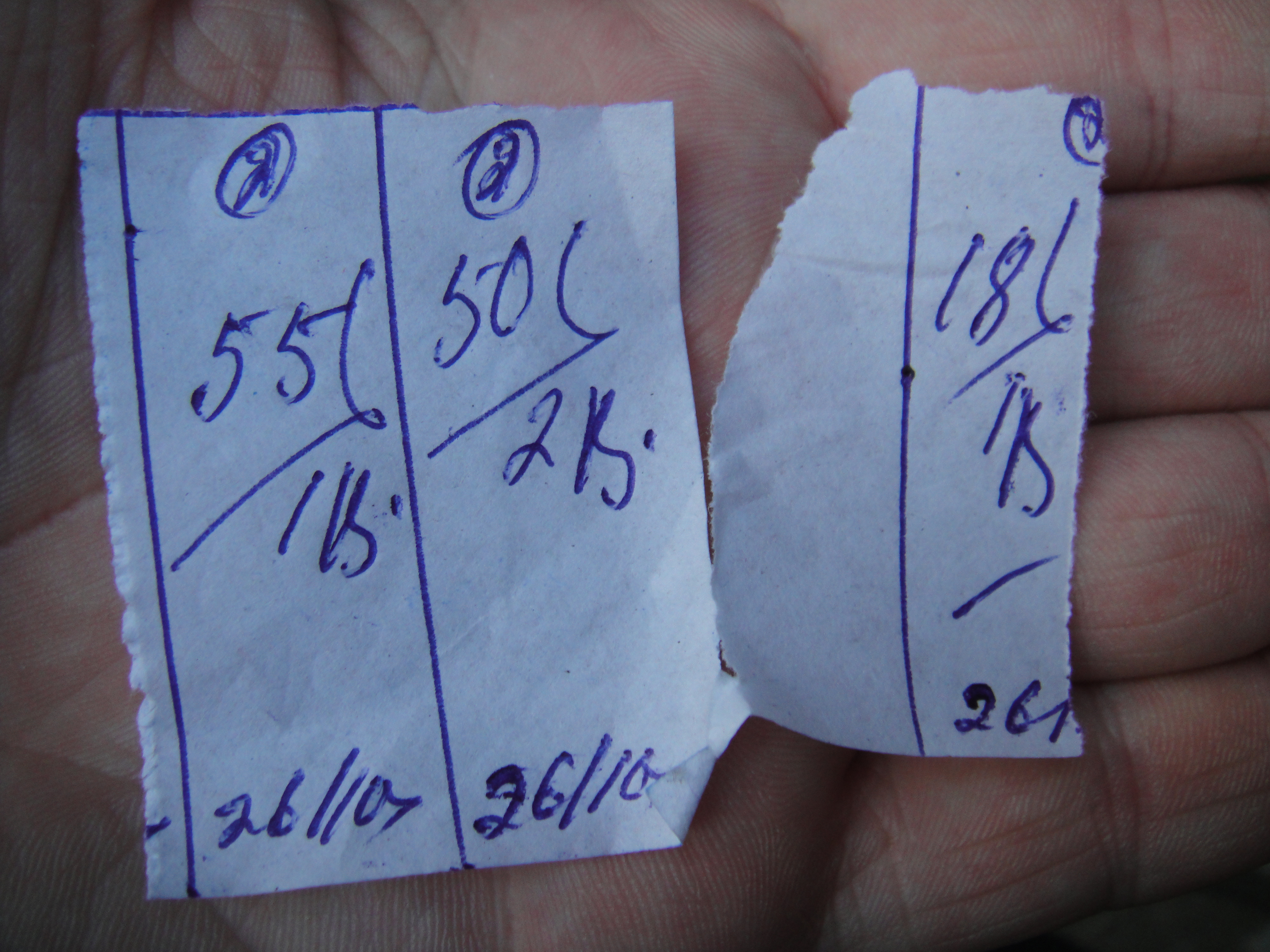 And here are the receipts I was given for the numbers I bet – my lottery tickets in effect: