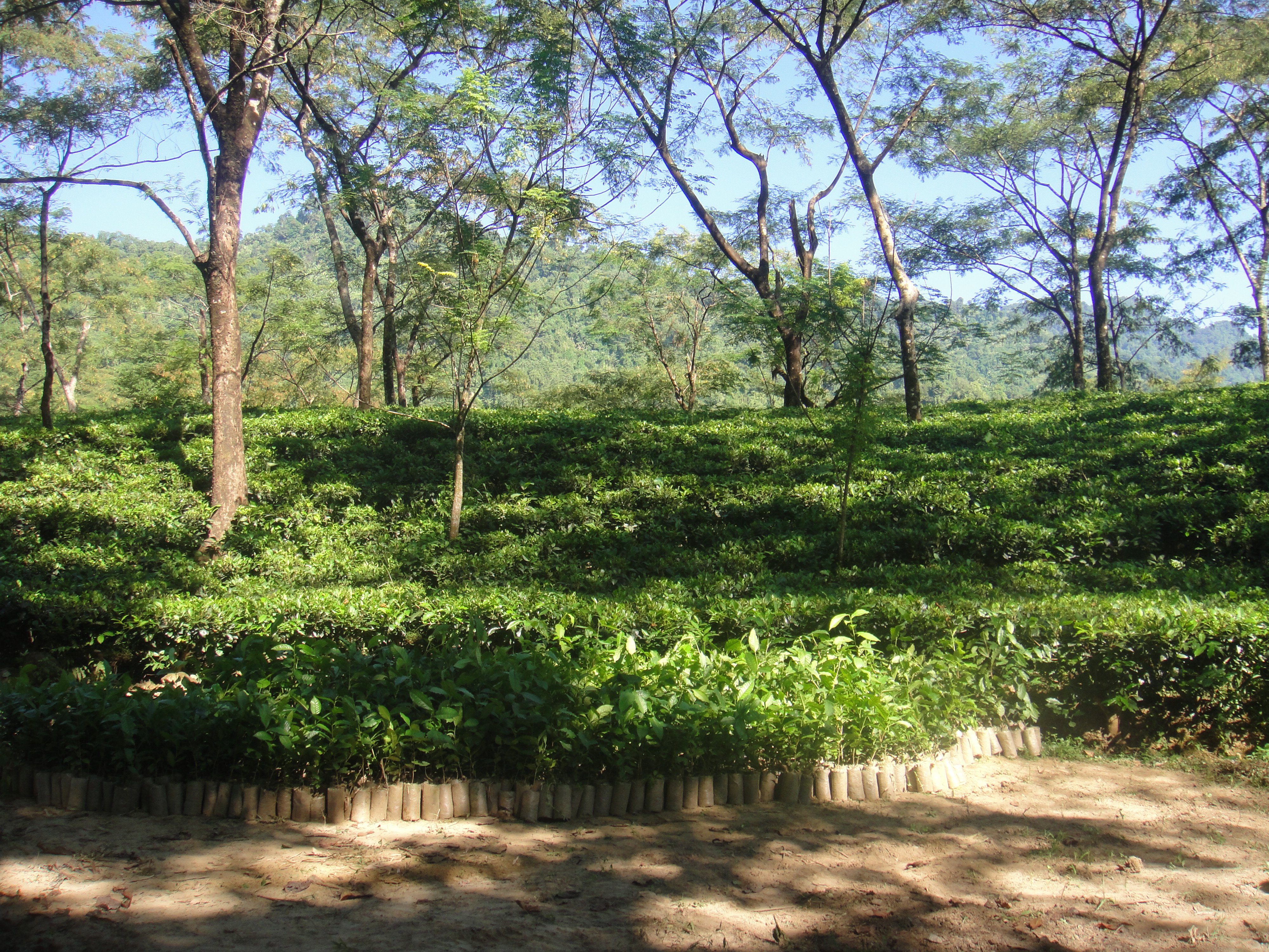 The trees interspersed with the tea provide a number of important functions. They protect the tea from certain types of insects as well as protect the leaves from burning in the intense Indian sunshine. In addition, the shade from the trees helps to keep the area more cool which reduces water consumption.