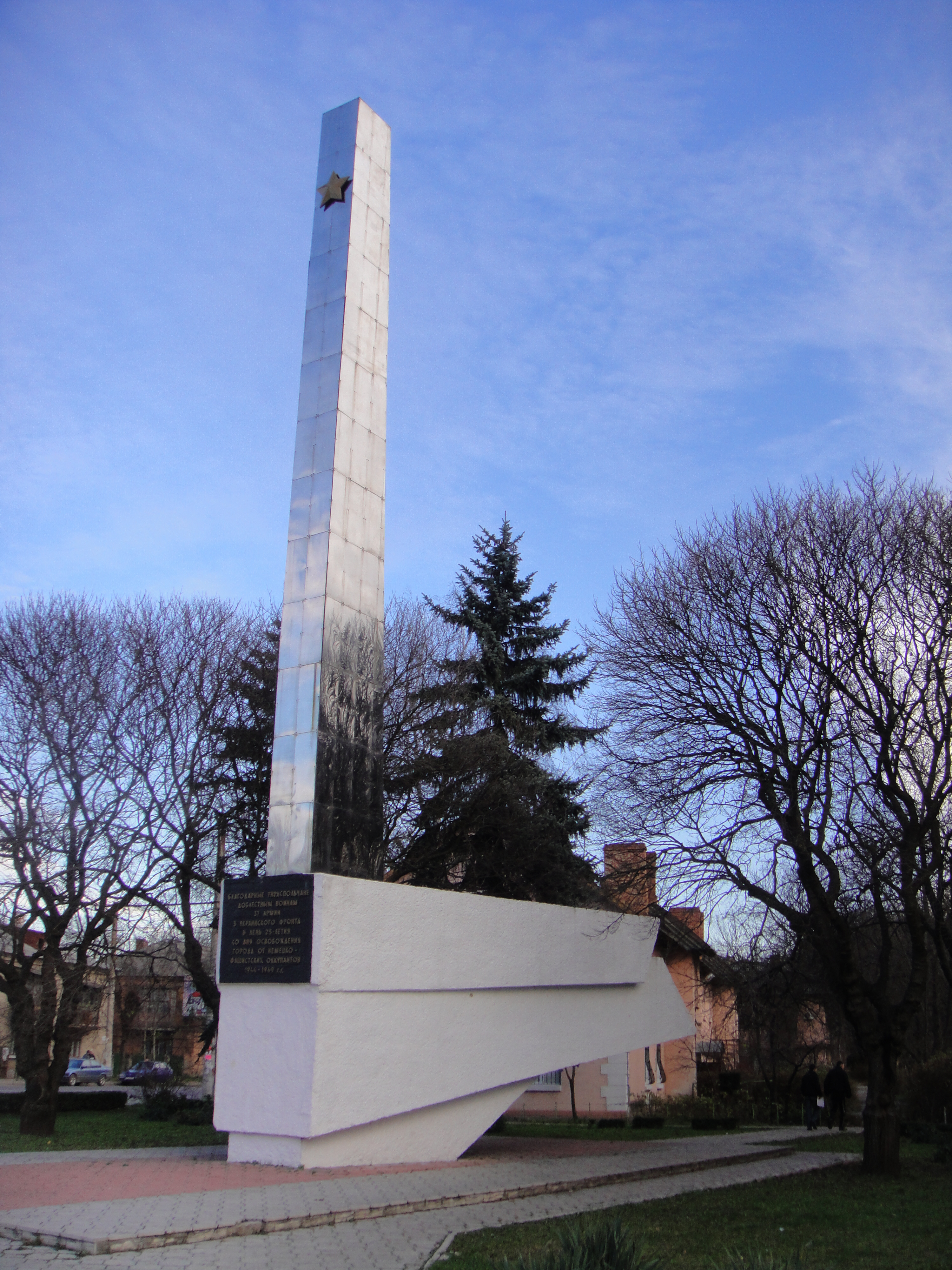 A Soviet T-34 tank in front of Tiraspol’s Heroes’ Cemetery and war memorial: