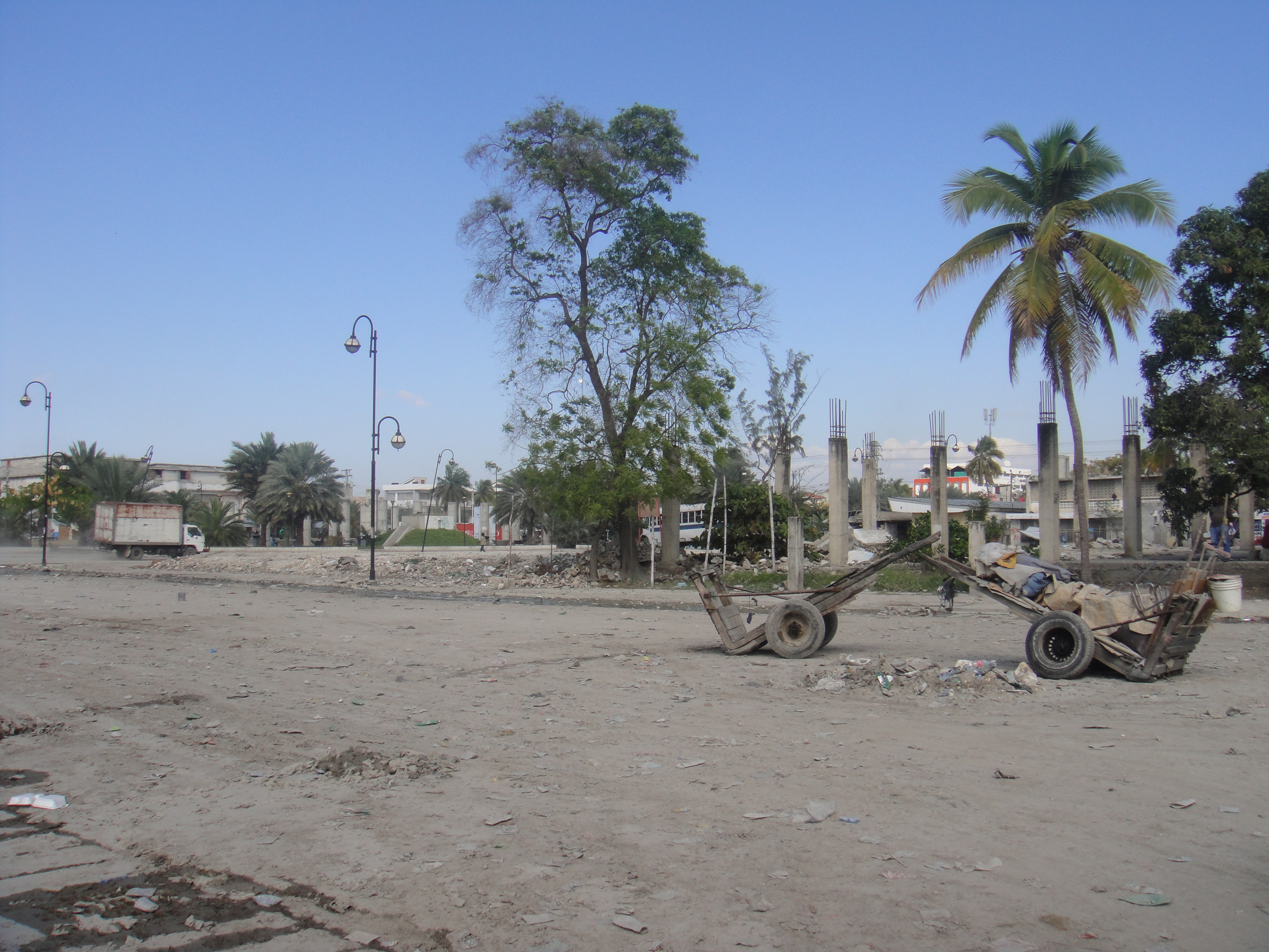 The Champs de Mars is where the National Palace is was and where the Bicentennial Monument celebrating independence from France in 1804 can be found… The Bicentennial Monument survived the earthquake: