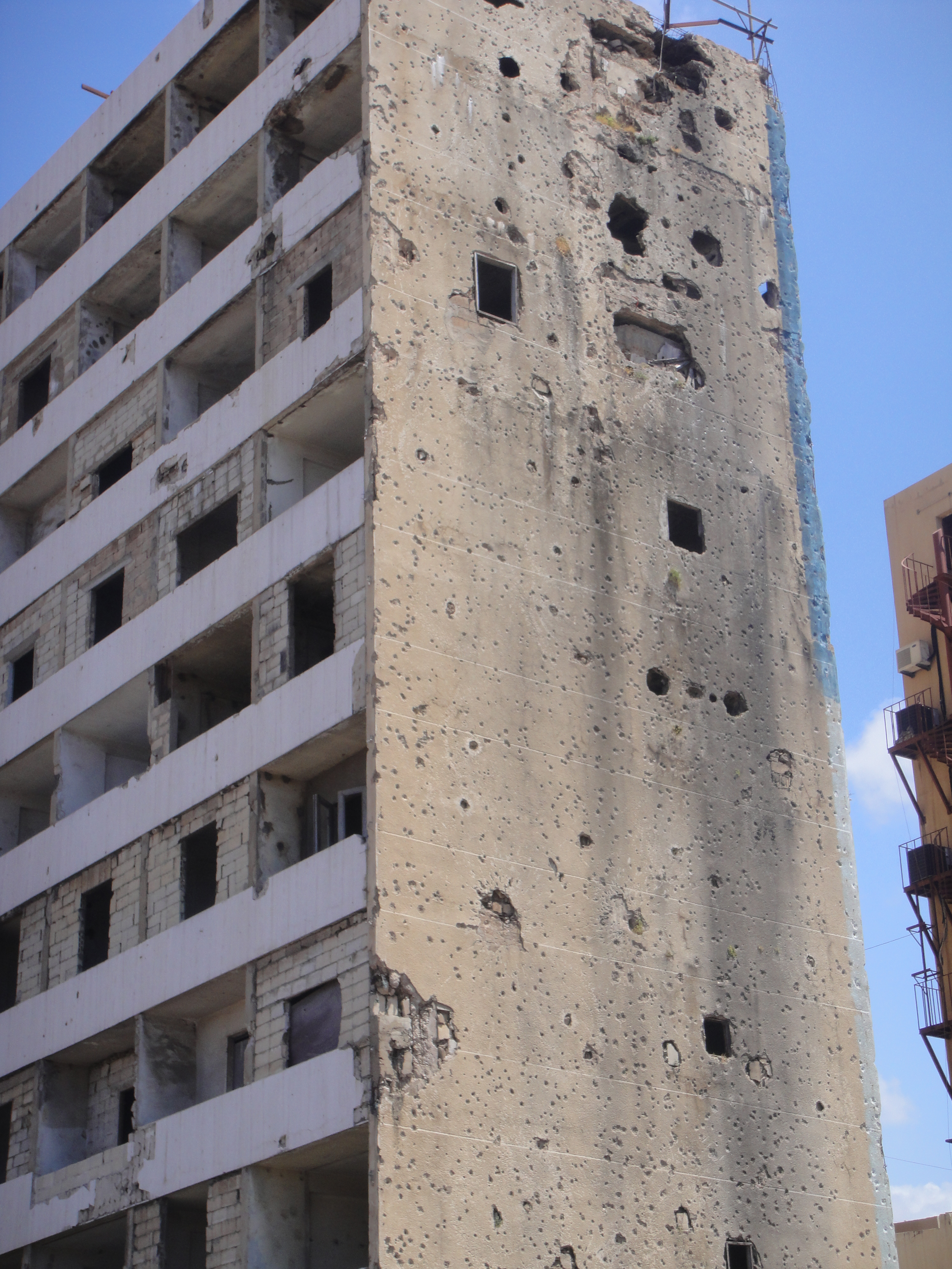 A view of the back gives one a better sense of the damage this centerpiece has sustained over years of warfare in Beirut: