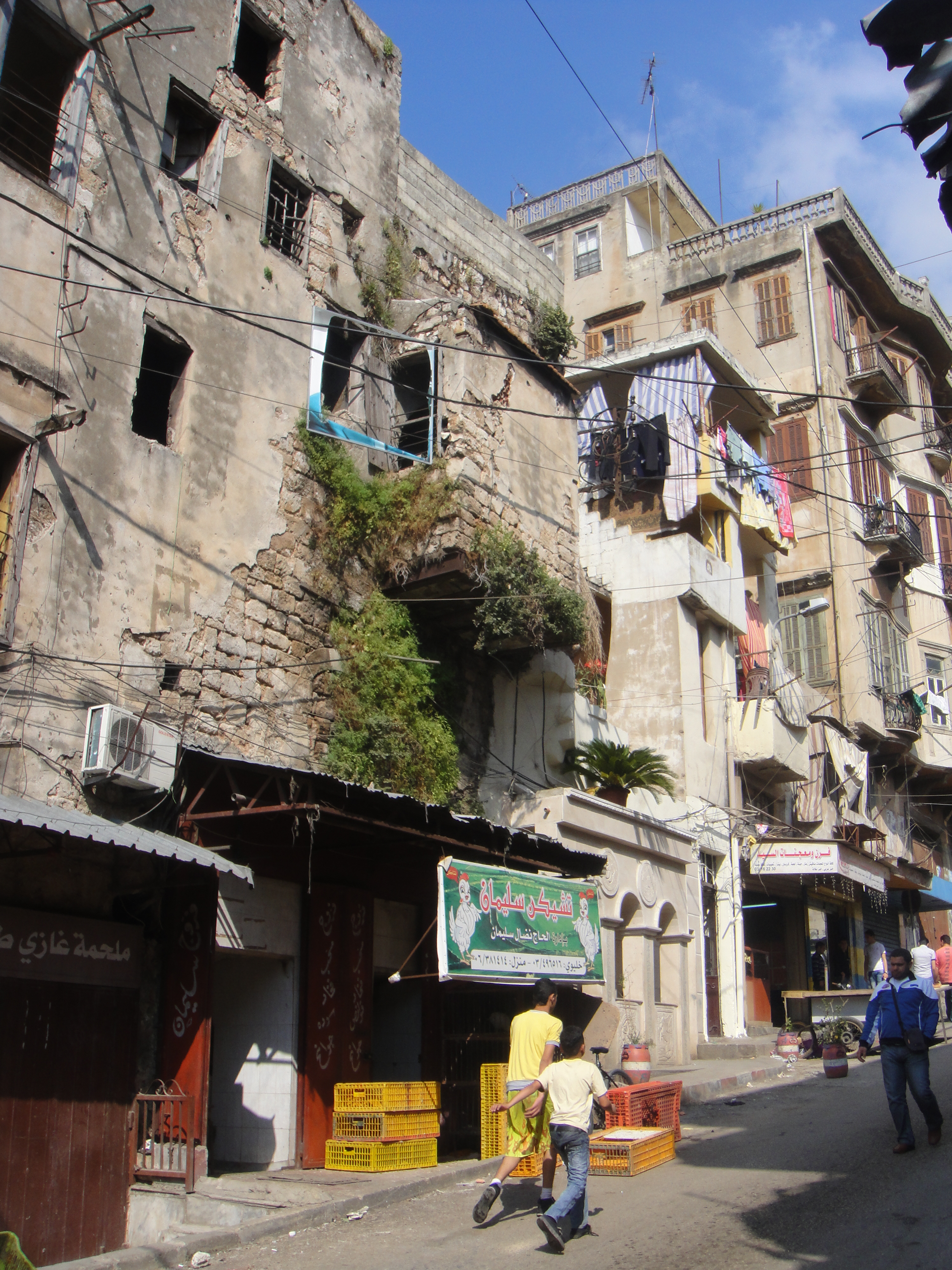 Some of the more evident damage from the bullets, rockets, mortars and artillery utilized in the many battles of the past decades in Tripoli: