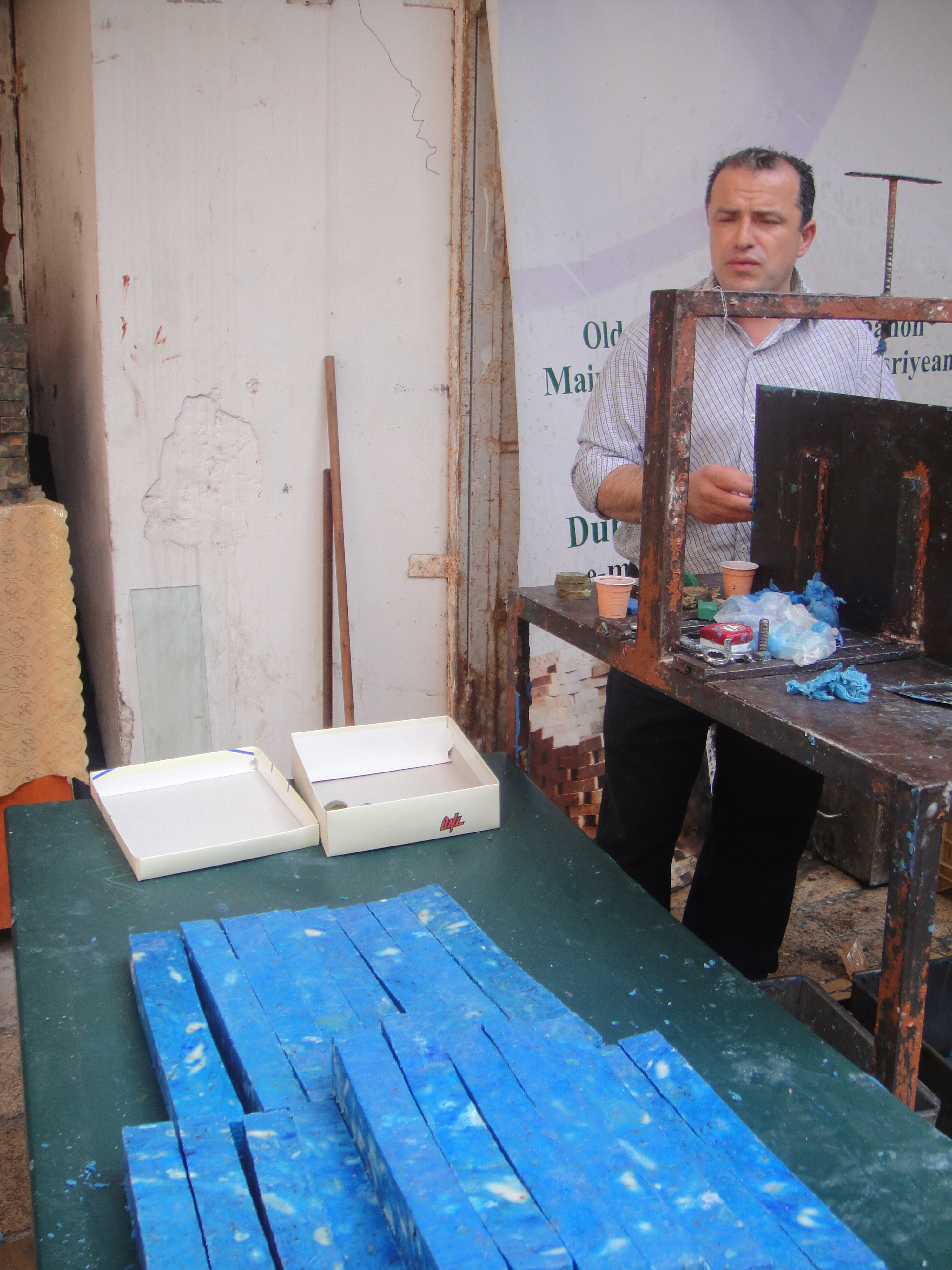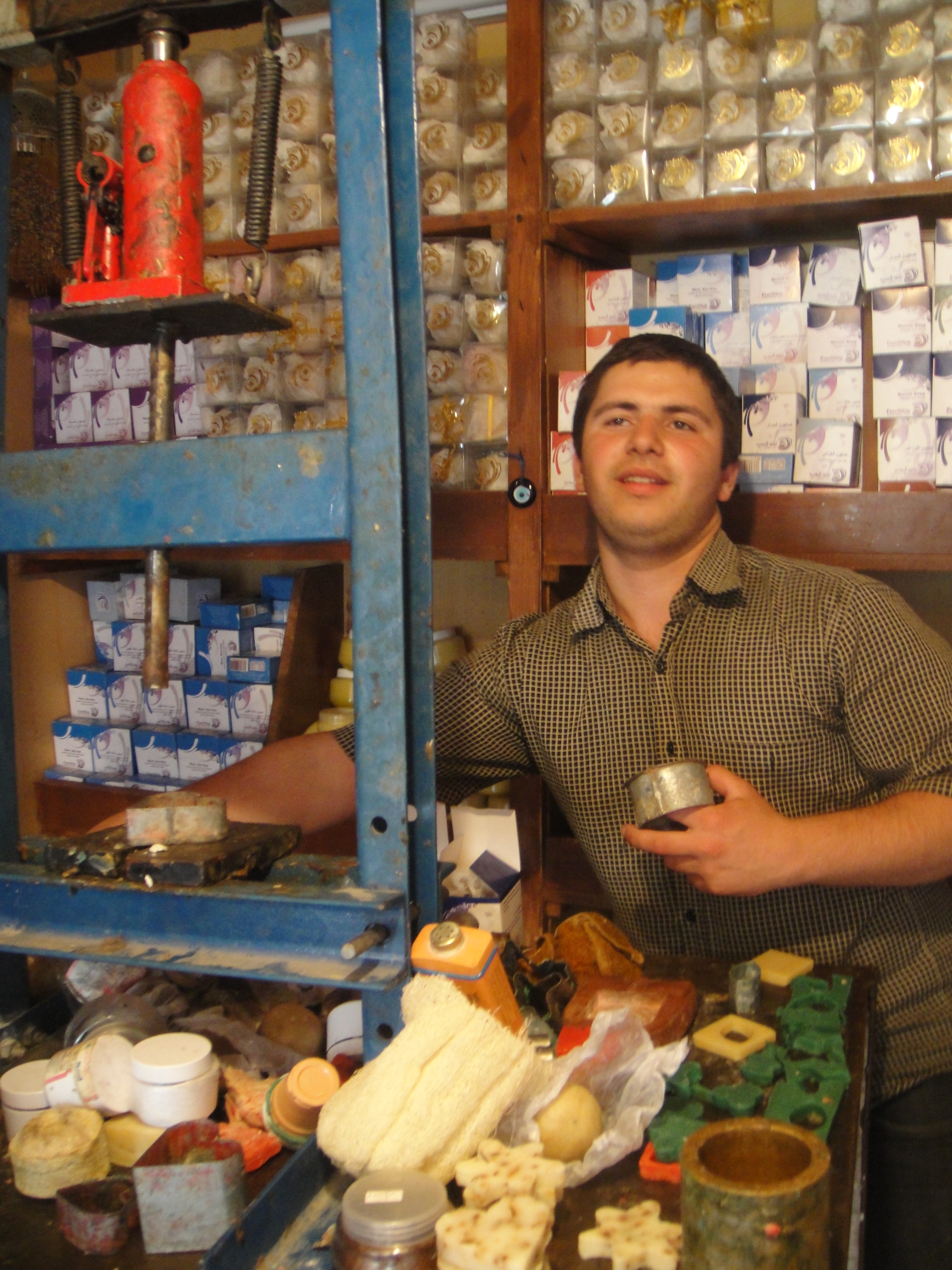 One specialty of Tripoli is the production of soap. Below a vendor of these soaps is presenting some of the various soaps to us and explaining their properties: