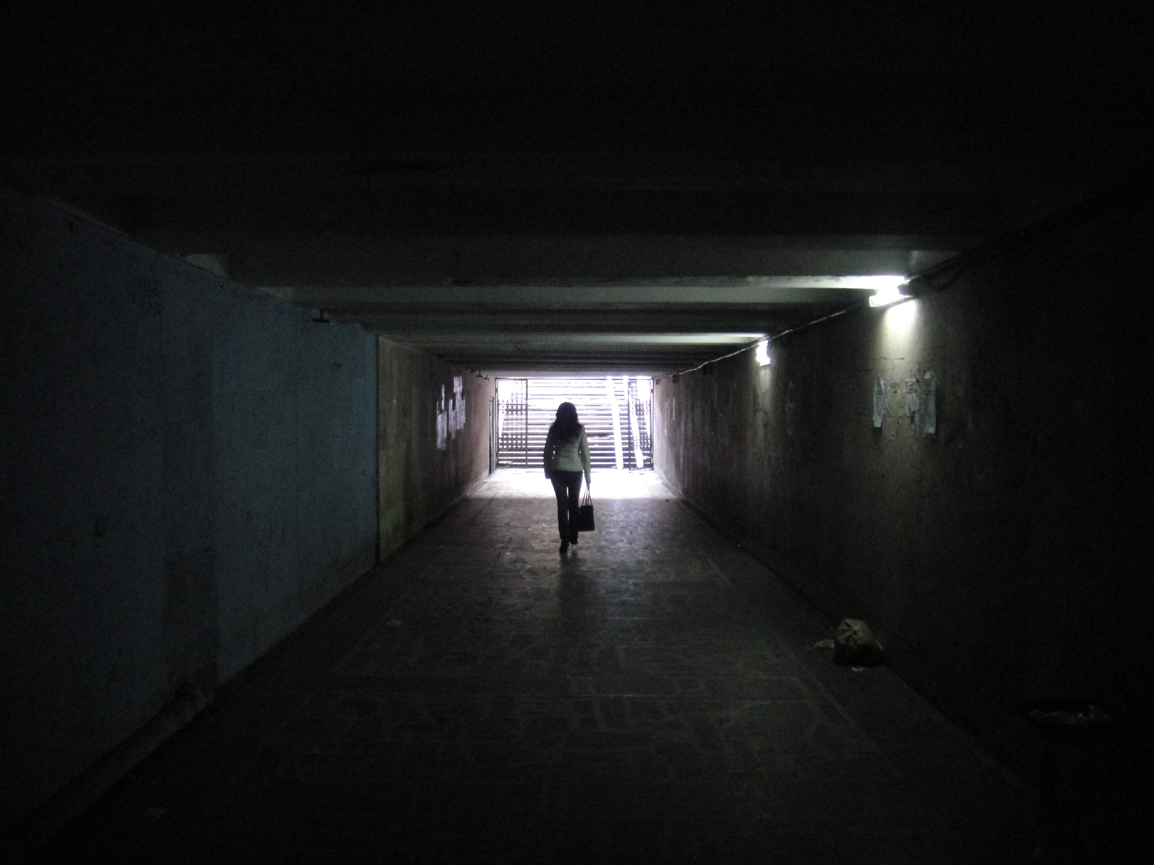 For me, that walk would start with this pedestrian tunnel which crossed under the busy street passing through the square in front of our hotel… I took this picture near the exit and so it is hard to tell, but much of that tunnel was pitch black which made for an interesting walk: