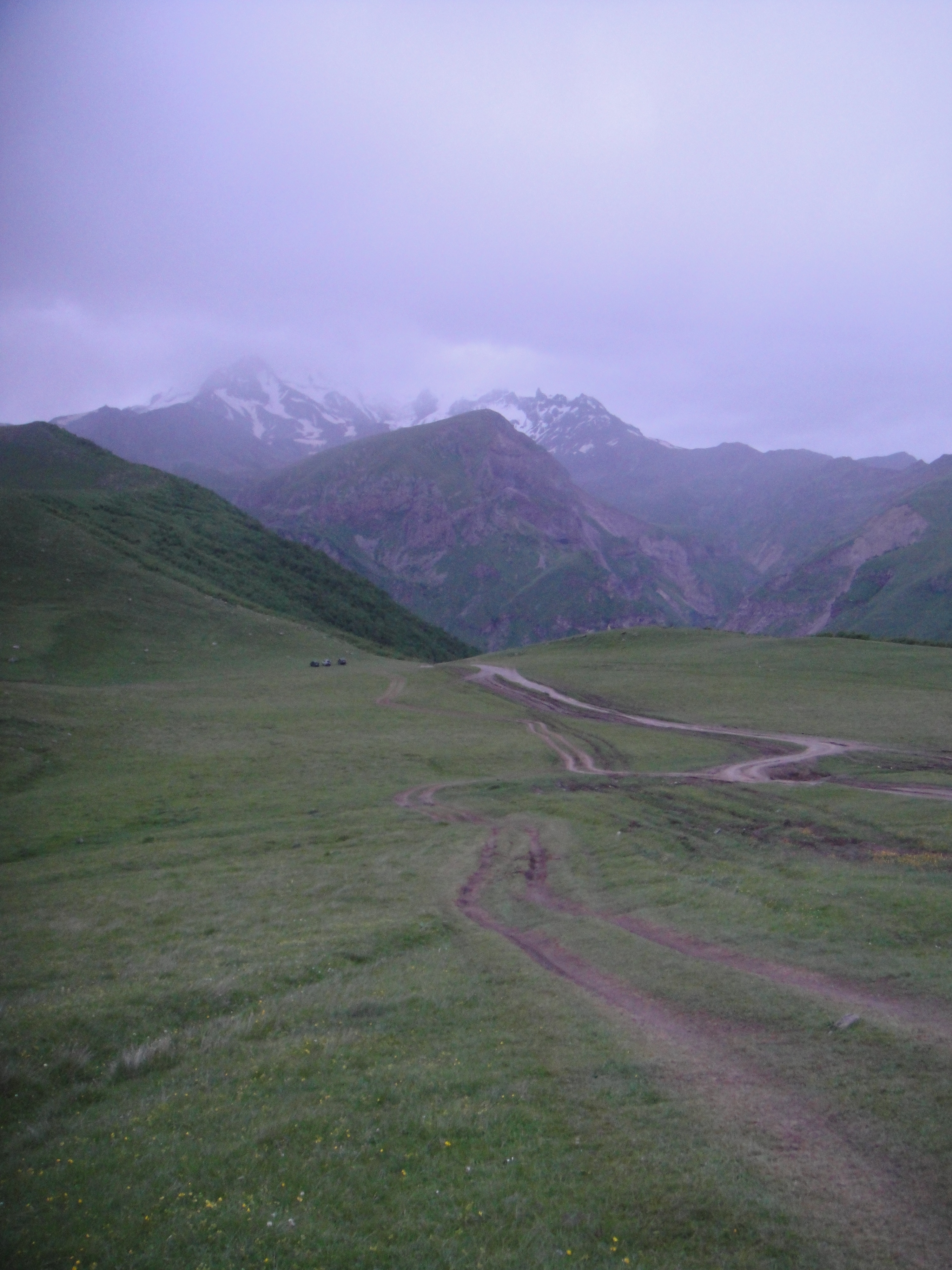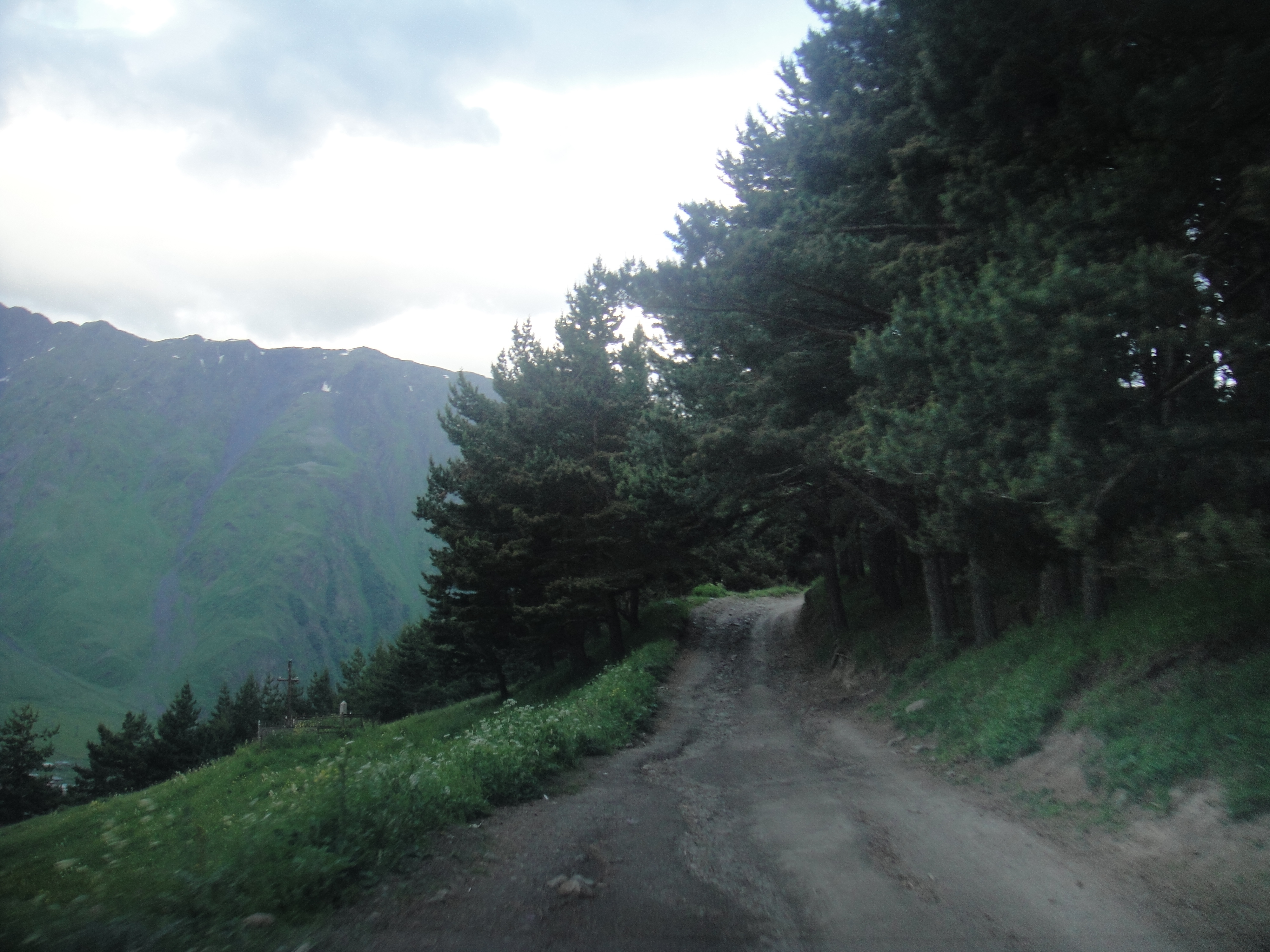 This is one of those places where the journey really is the destination. It isn’t just the drive out along the Georgian Military Highway to the town of Kazbegi (Stepantsminda), but also the drive up to the church as well. The Gergeti Trinity Church sits high on a ridge west of Kazbegi, silhouetted against the massive bulk of Mount Kazbek, and the sight of it was irresistible to me. I knew I had to get up there…