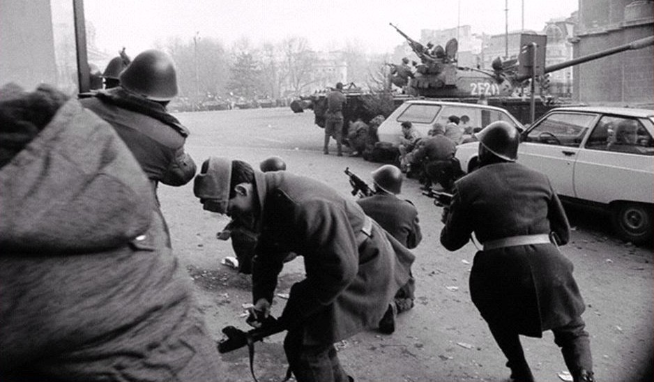 Forces loyal to the old regime (spontaneously labelled “terrorists”) opened fire on crowds and attacked the television, radio, and telephone buildings as well as Palace Square, the university and the adjoining University Square, Otopeni and Băneasa airports, hospitals and even the Ministry of Defence.