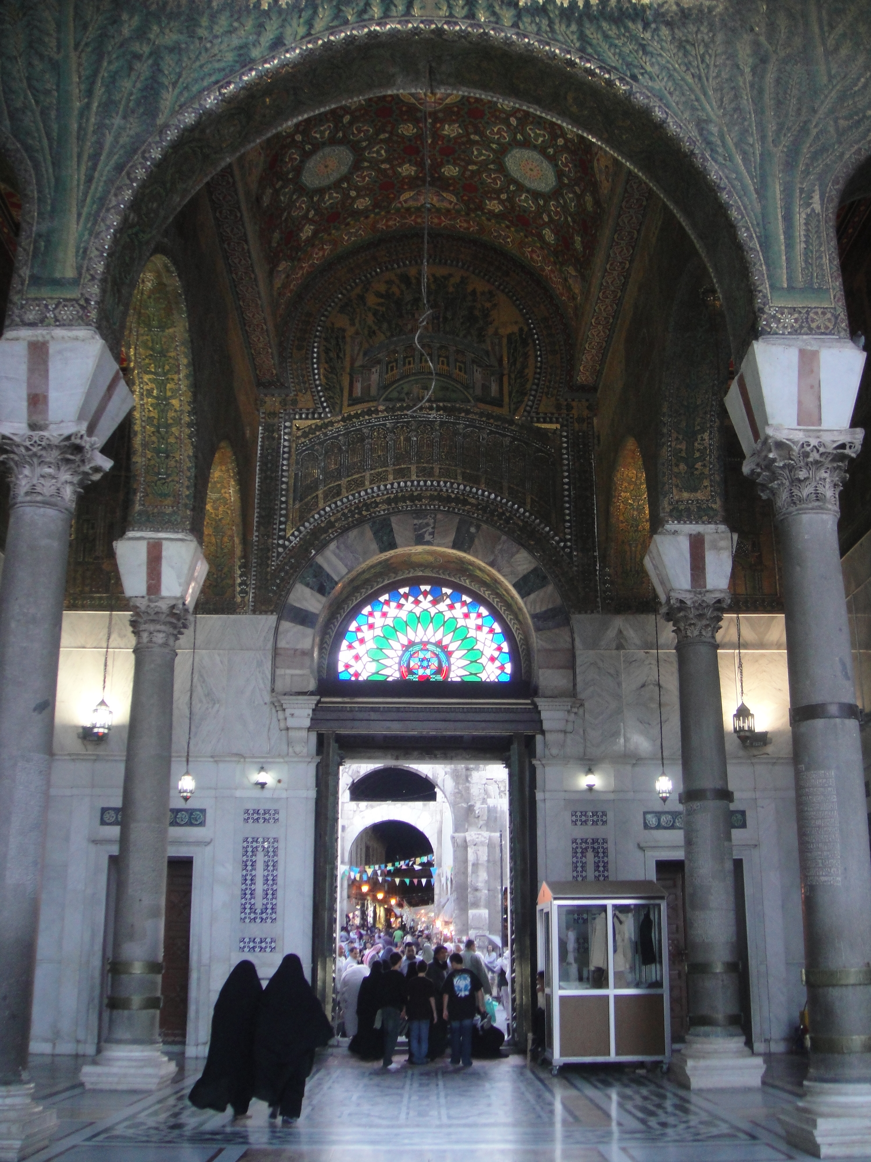 The prayer hall inside the Umayyad Mosque: